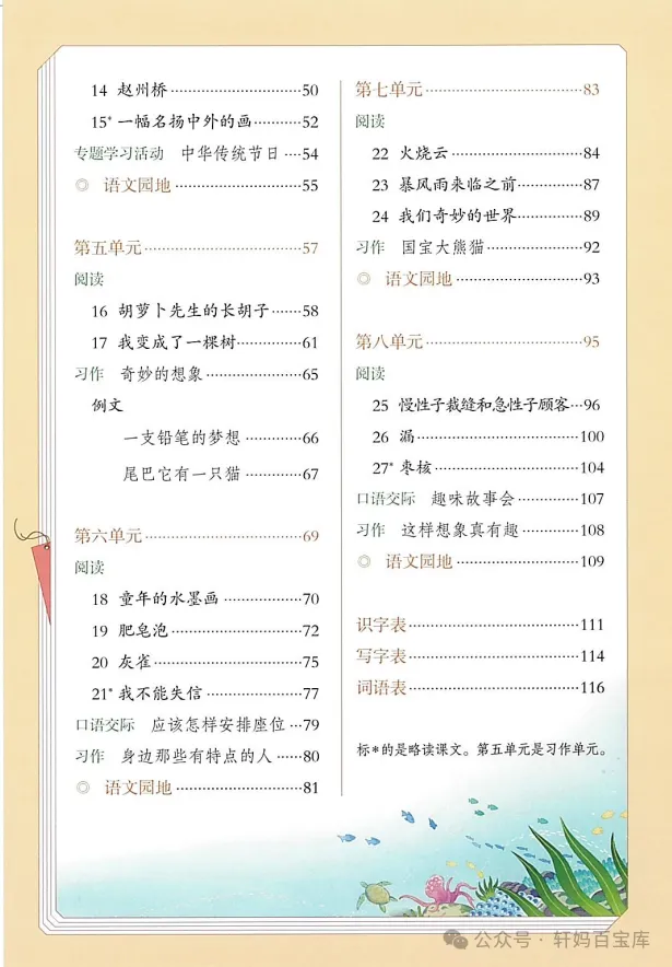 三、口语交际和习作部分也有变化,旧版第七单元的“劝告”挪到了第二单元,第六单元还新增了“应该怎样安排座位”的内容。