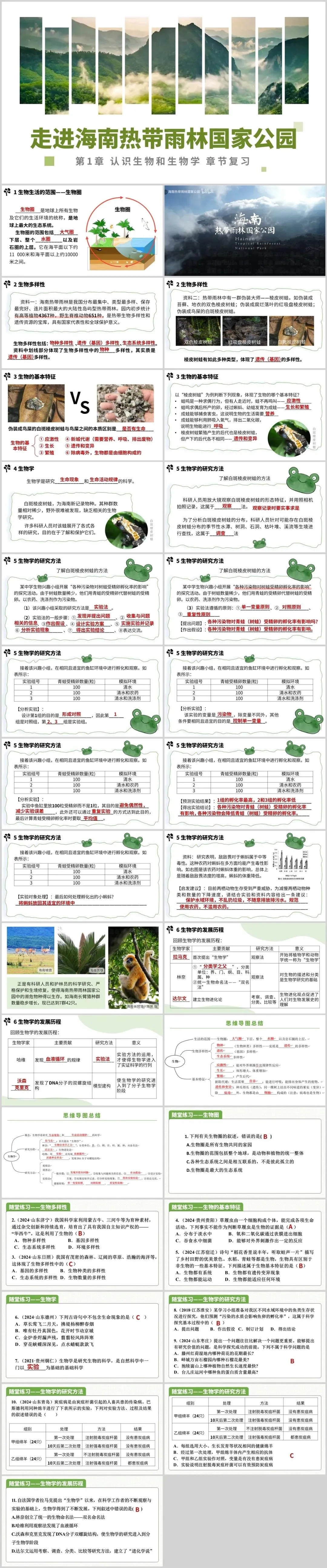 第一章《认识生物和生物学》以走进海南热带雨林国家公园为情境,贯穿整个课件,把所有知识点都串了起来,各个素材的使用非常丰富,给复习课增添了很多趣味性。