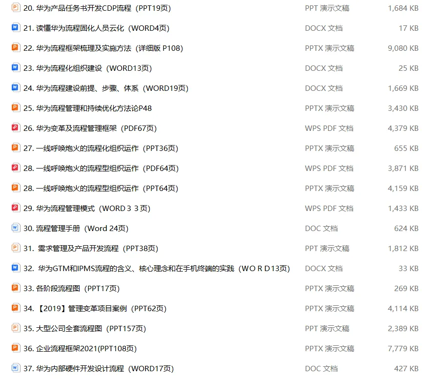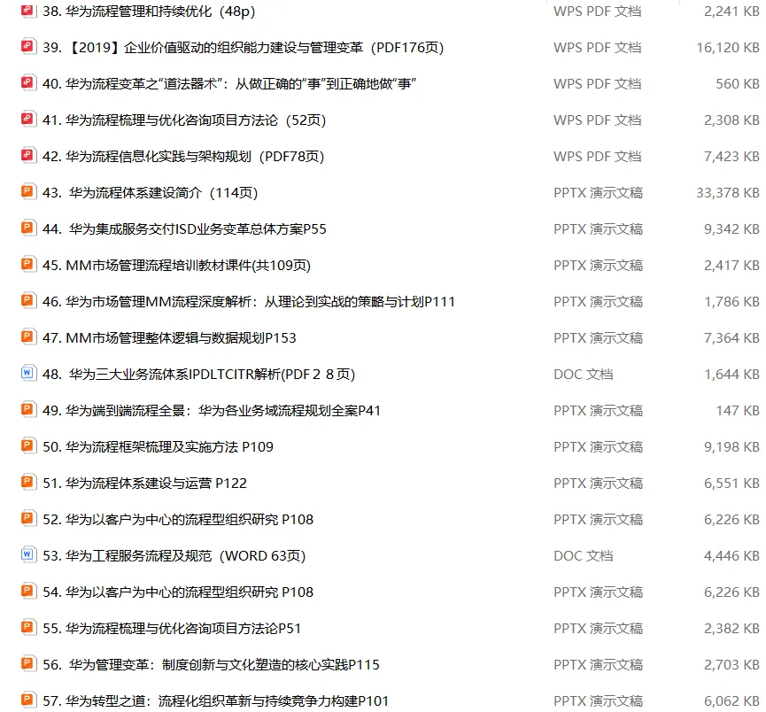 3、华为流程变革管理(57个300元含免费更新)
