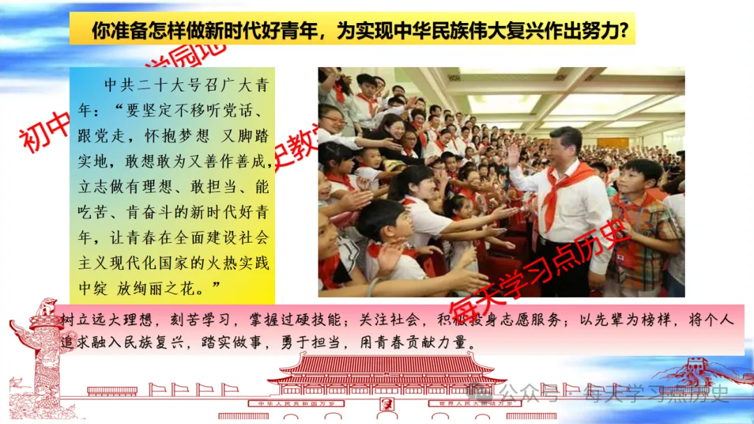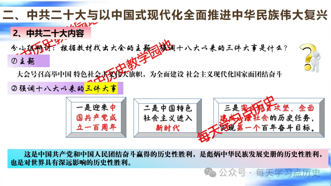 每天学习点历史公众号是初中历史教学园地的辅助号,发表的资料习题多点