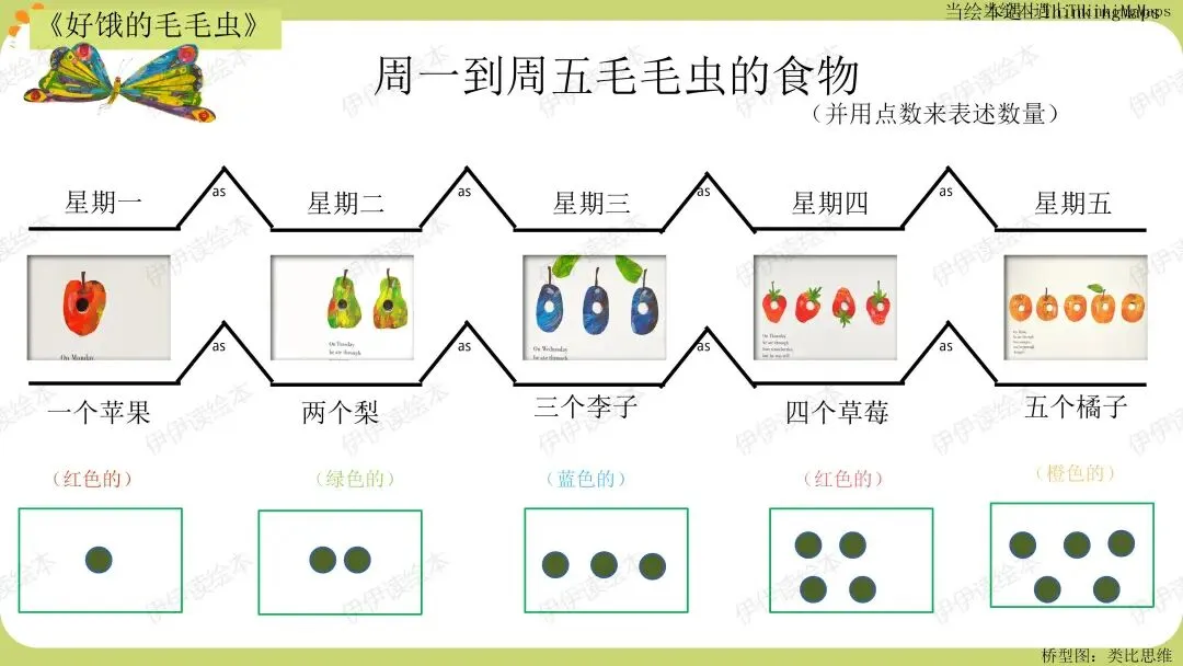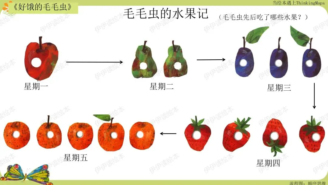 ——现在我们一起回忆一下,毛毛虫星期一到星期五吃了哪些东西?
