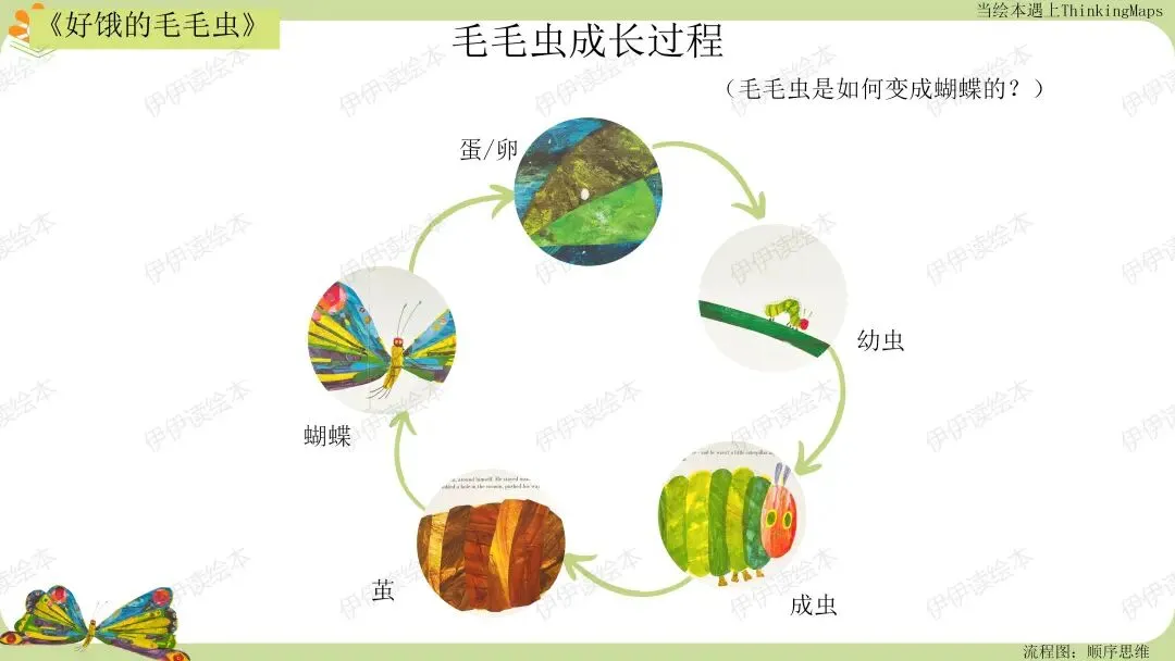 重点:了解毛毛虫变成蝴蝶的过程。