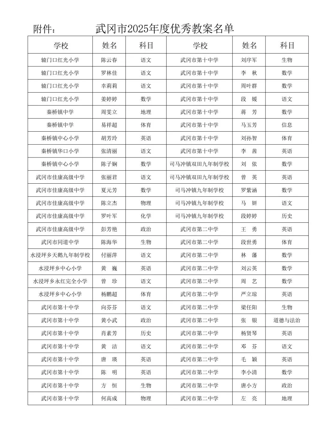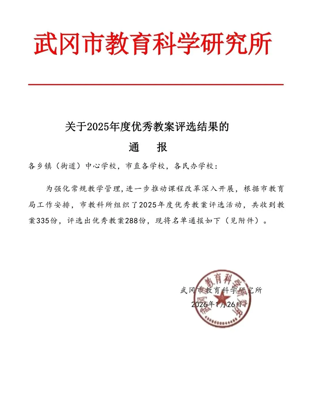 >武冈市优秀教案评选结果通报