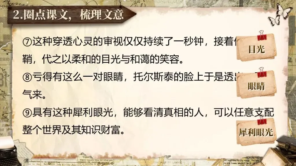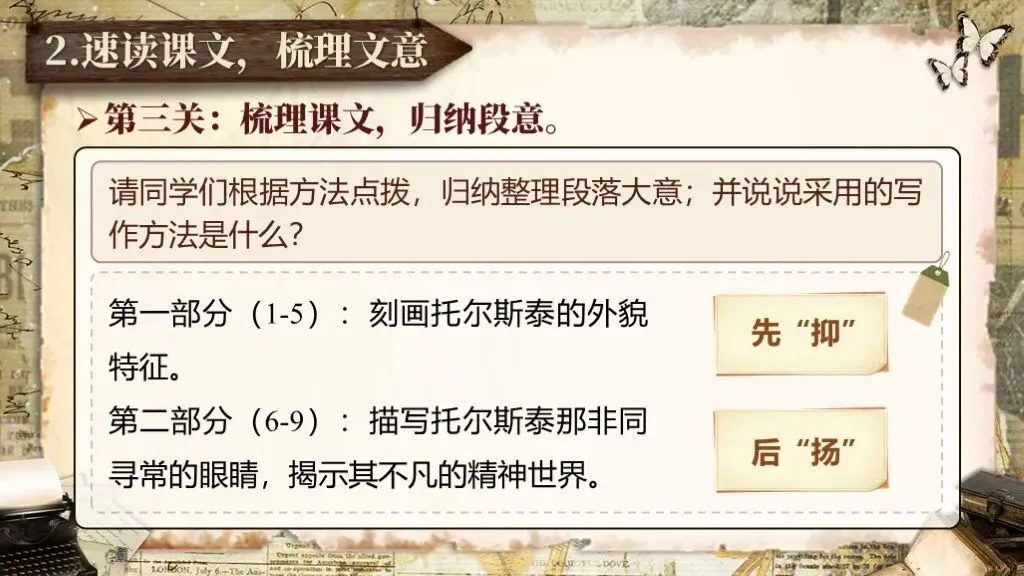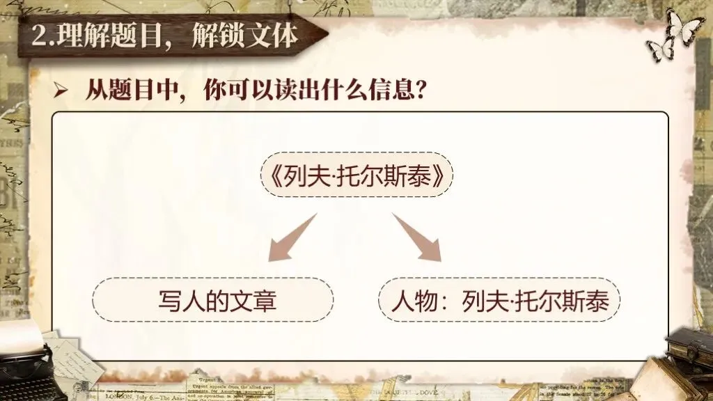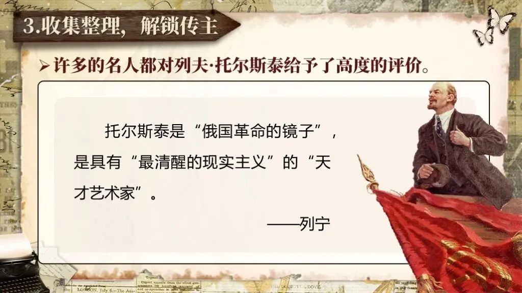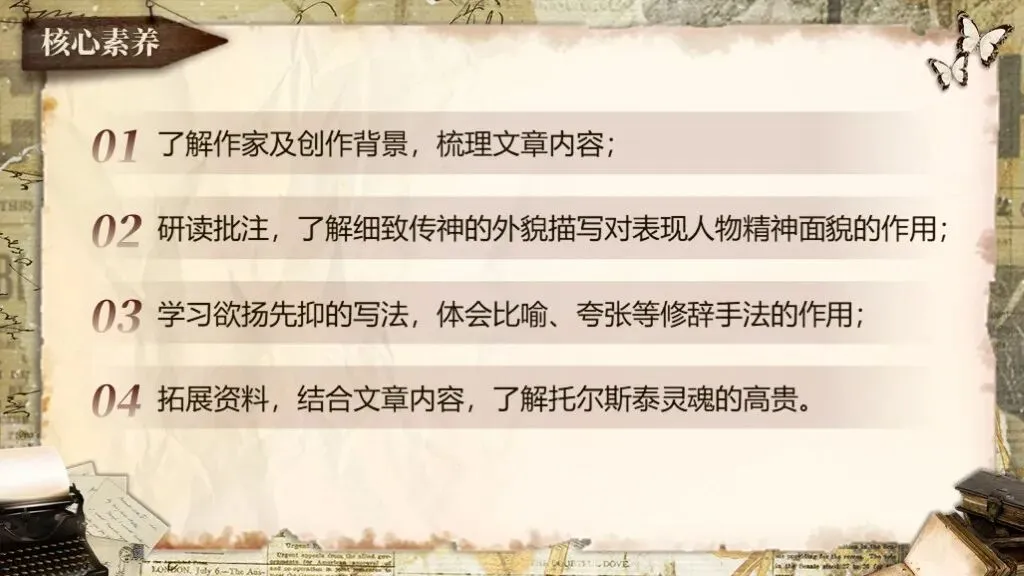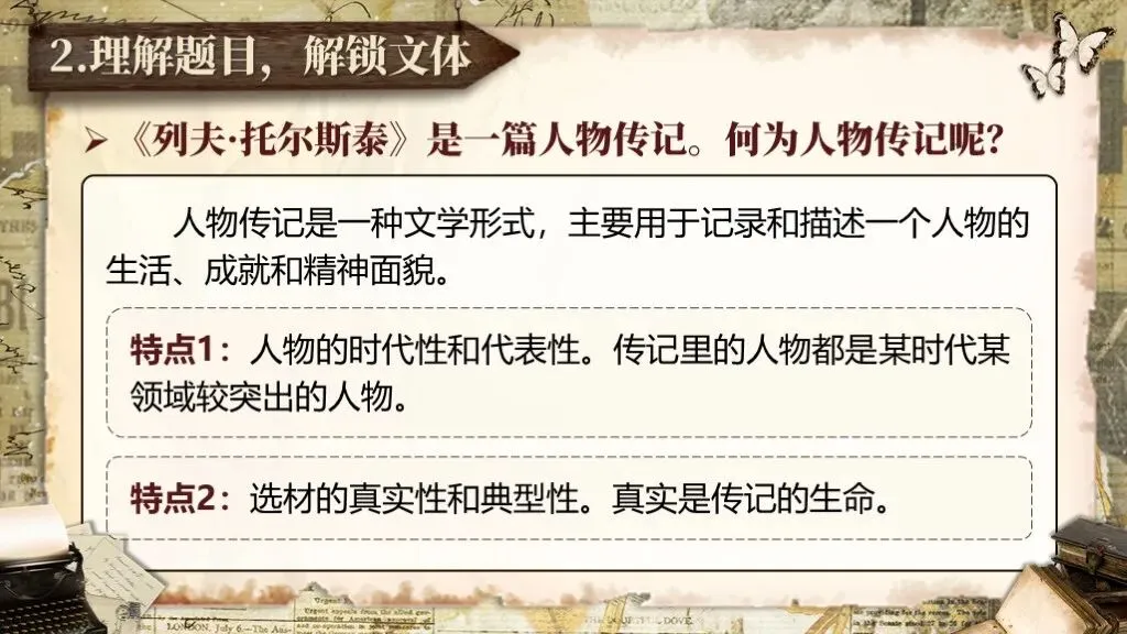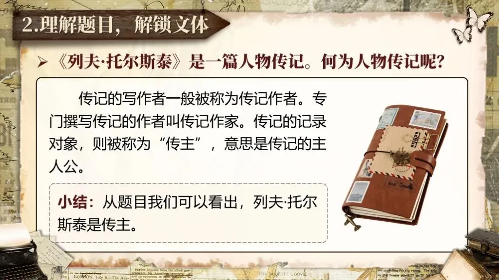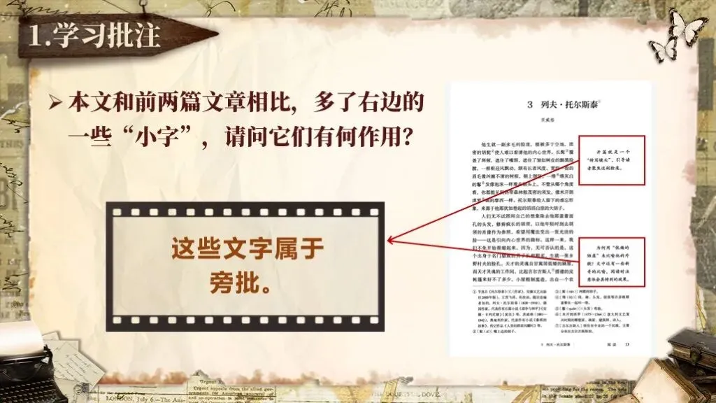 《列夫·托尔斯泰》是部编版七年级下册第一单元的一篇自读课文,是奥地利作家茨威格的传记作品中可以独立成篇的一节。作者以其力透纸背而又妙趣横生的文笔为我们描绘出一幅世界级大文豪托尔斯泰的肖像画,从而揭示出托尔斯泰深邃而卓越的精神世界。学习课文,我们可以借助批注进行阅读,悉心品味文中丰富而深厚的人文内涵。