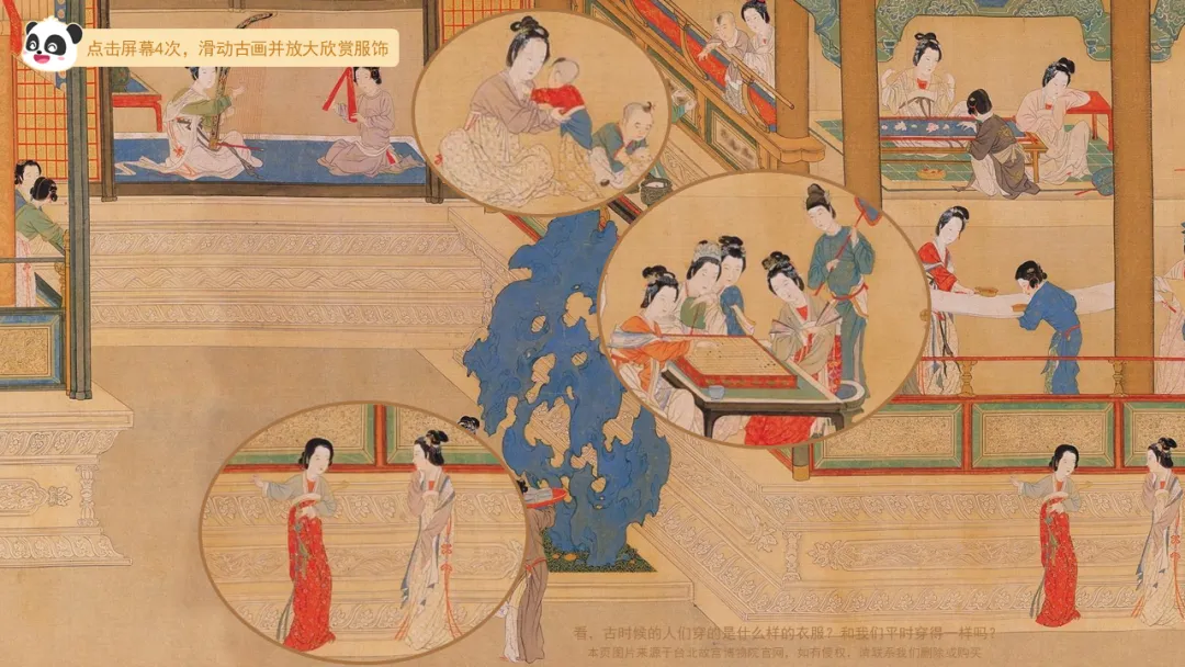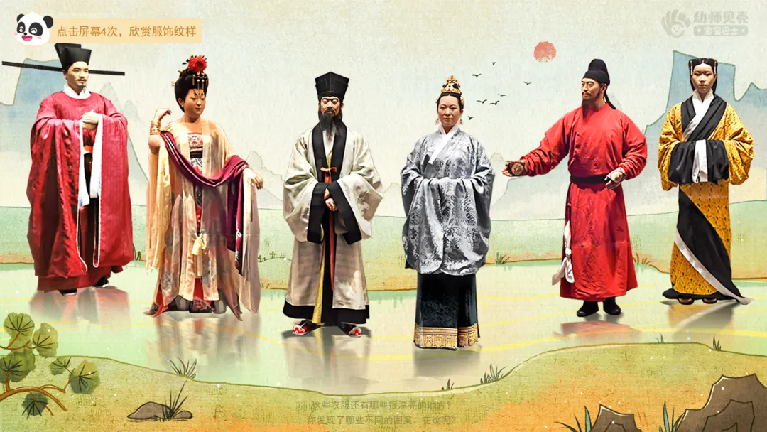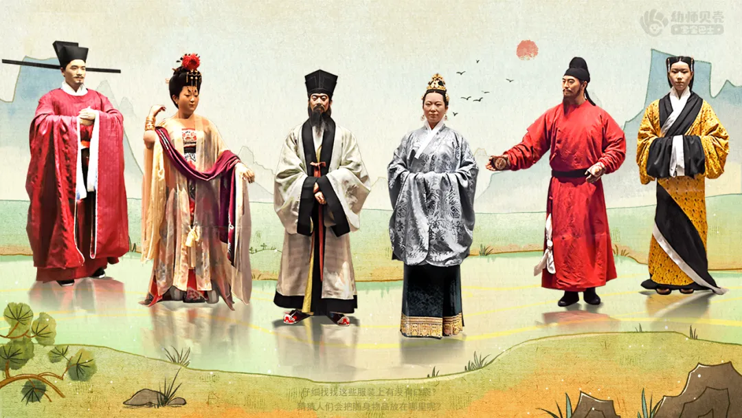 ——看,古时候的人们穿的是什么样的衣服?和我们平时穿得一样吗?