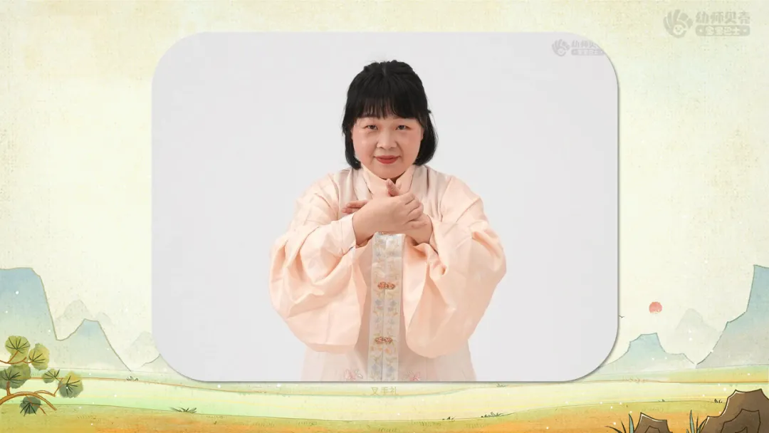 Ø活动建议:教师可带领幼儿跟随视频及图片模仿行礼动作,男生左手在前,女生右手在前。
