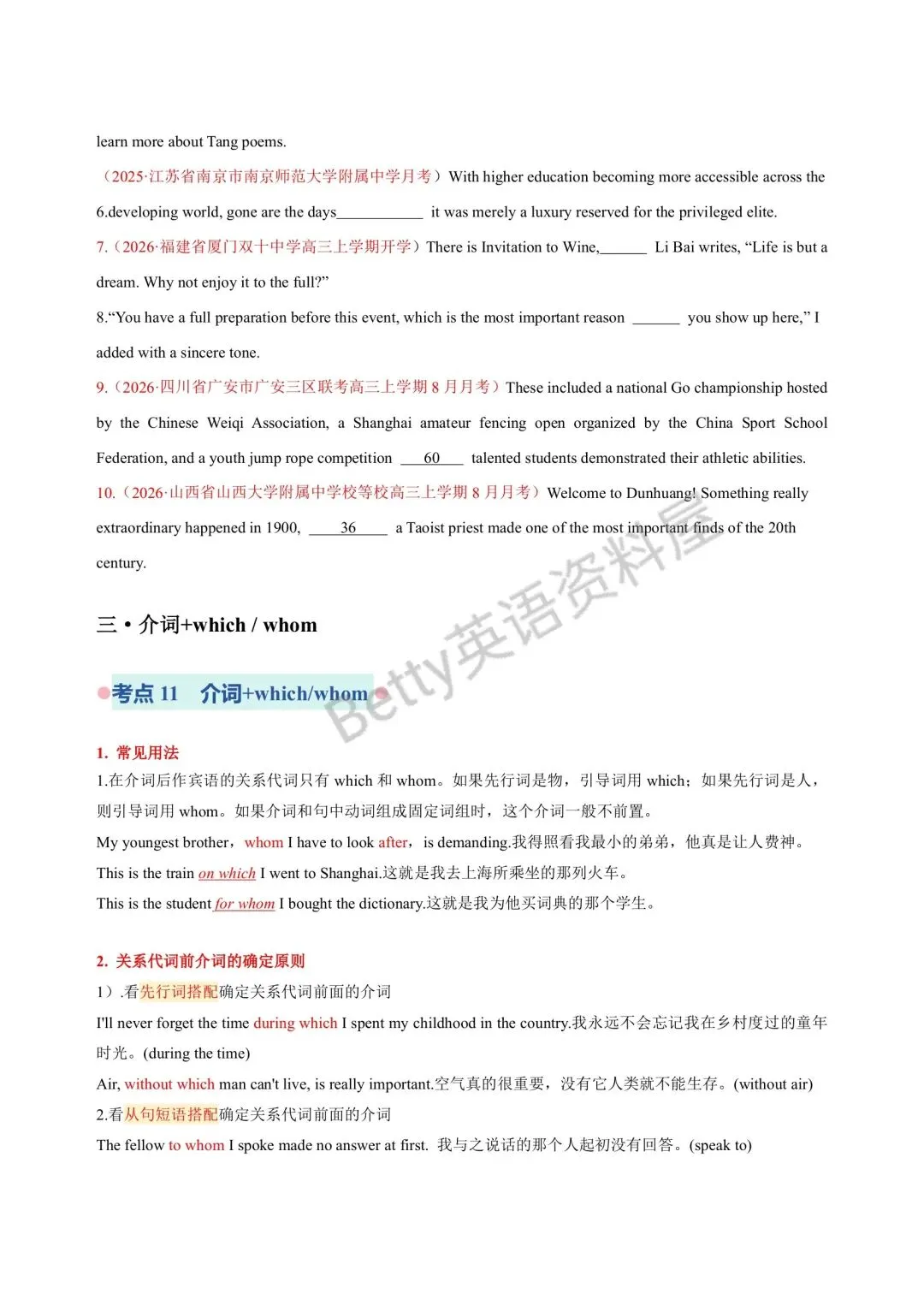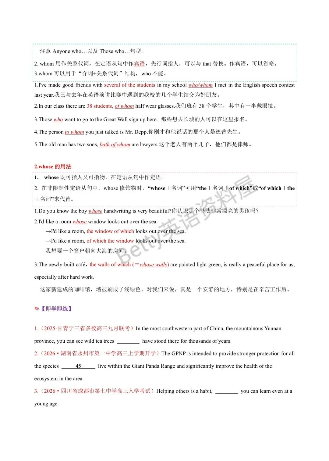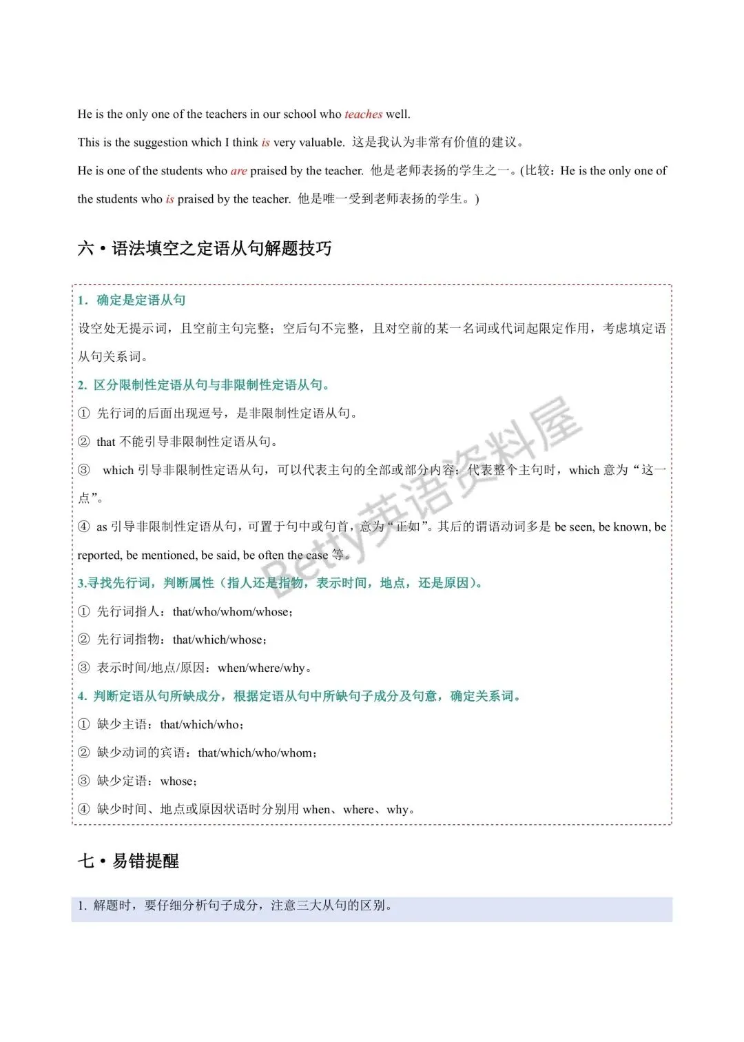1.因为寒假课时较短,语法专题是整理的高考高频且较难的时态、非谓语、三大从句;