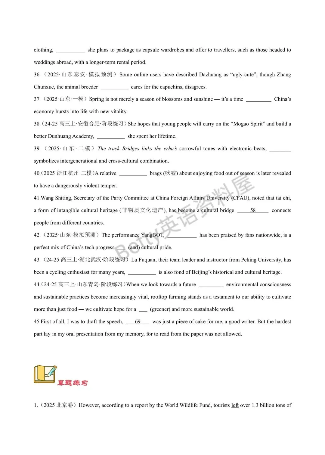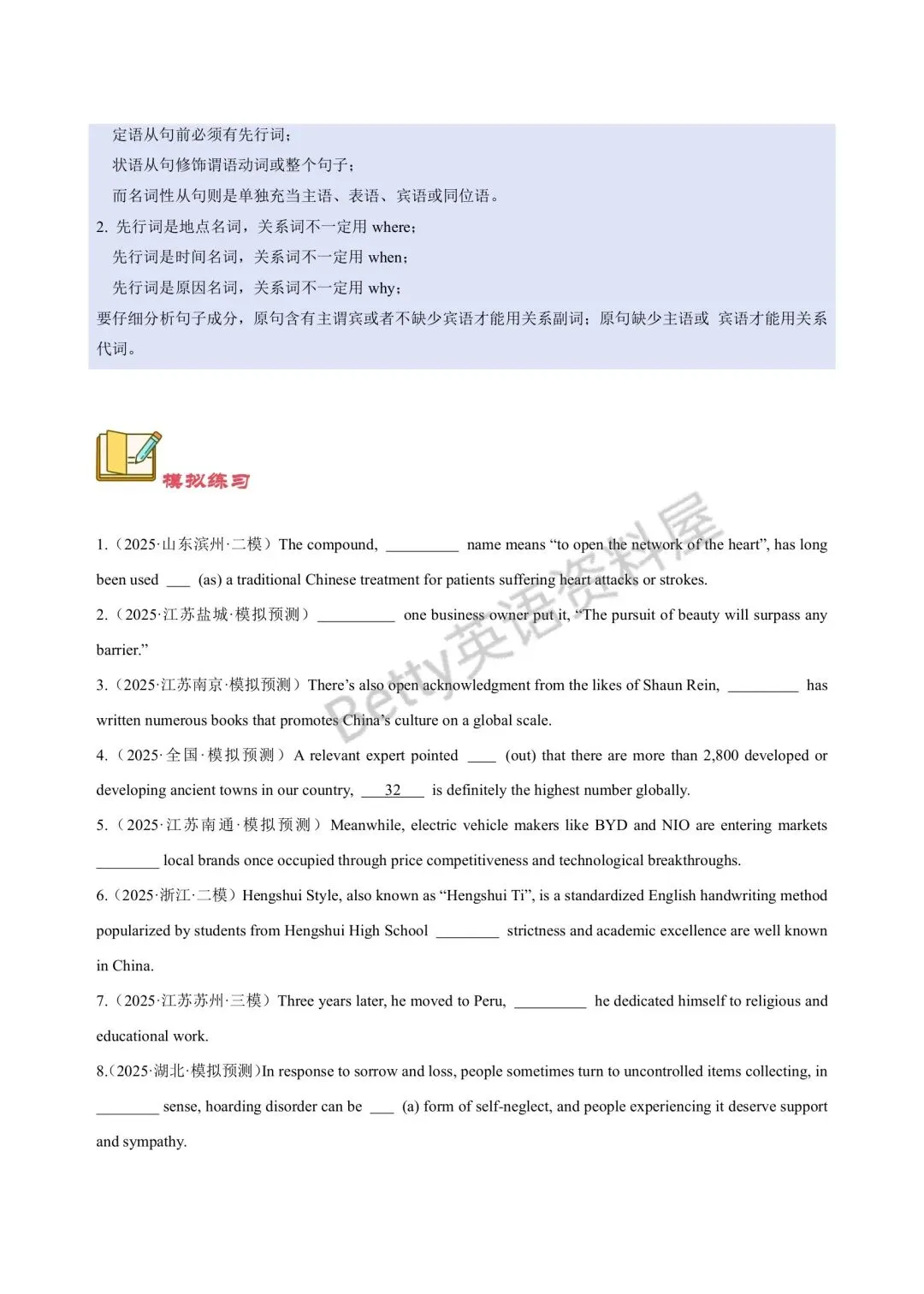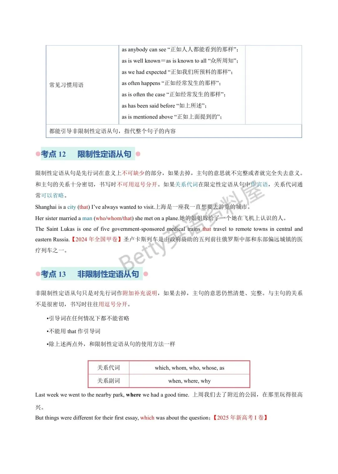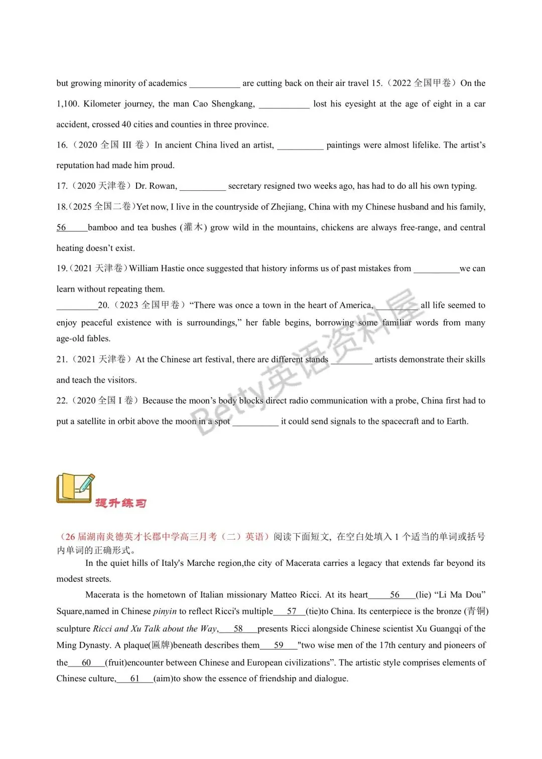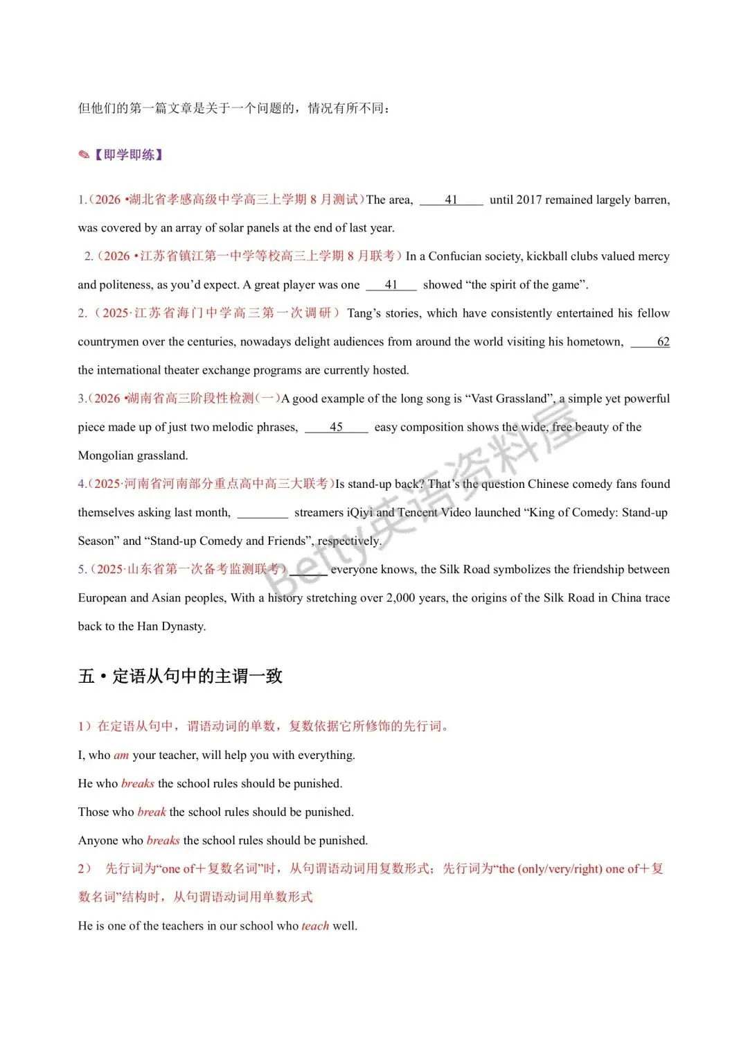 1.专题语法考点考情分析 2.专题语法考点讲练 知识点总结较细致,重点突出,每个考点都有对应的例句➕针对性练习 3.专题语法综合练习(以25年全国模拟真题为主) 4.专题语法历年高考真题练习(含25年真题) 5.提升练习:语法填空1篇(25届/26届全国模拟真题) |
