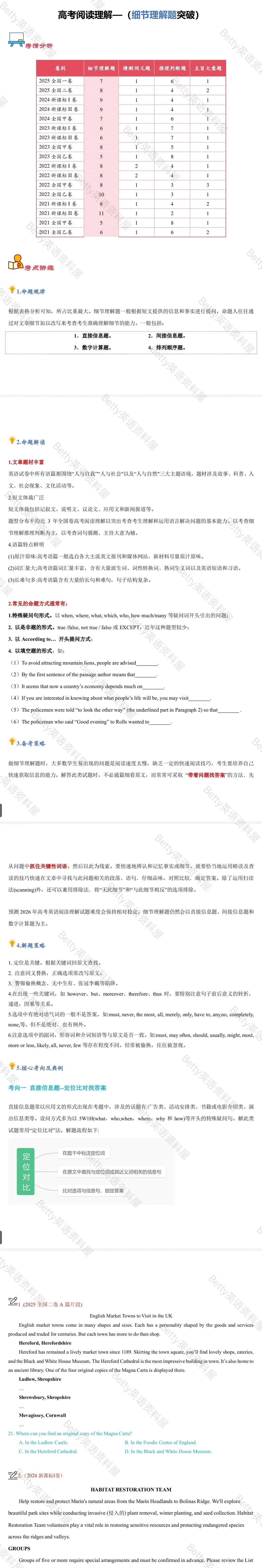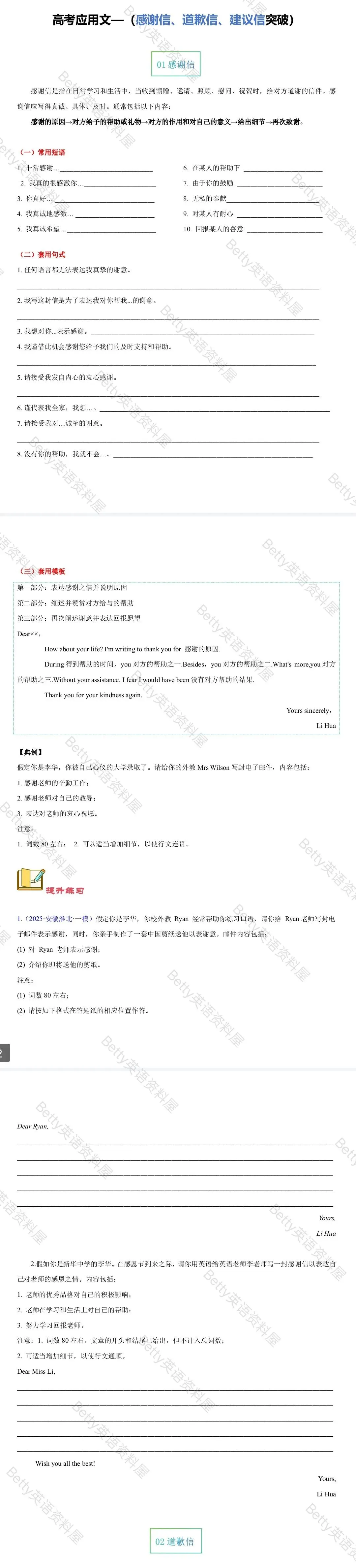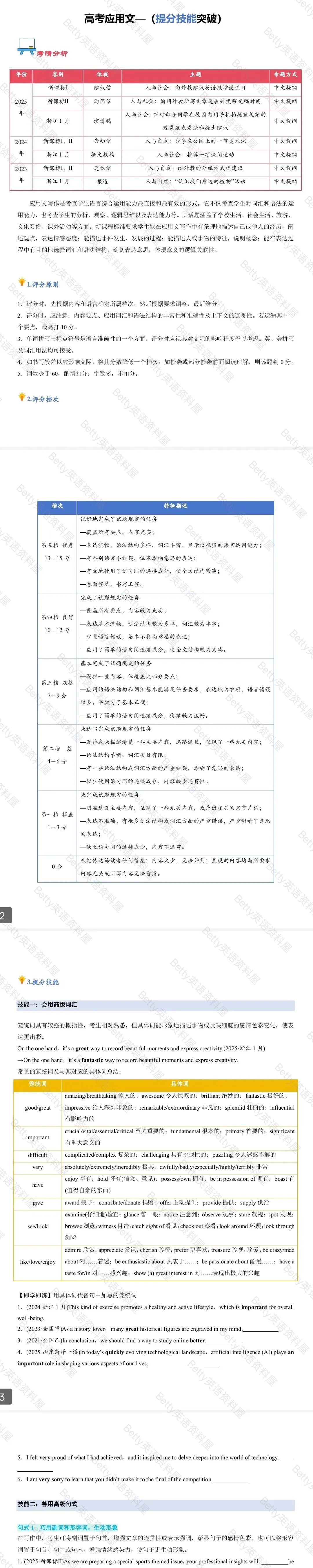 2.题型部分整理的是语法填空全部考点、阅读理解四大题型突破、应用文提分技能及部分文体突破