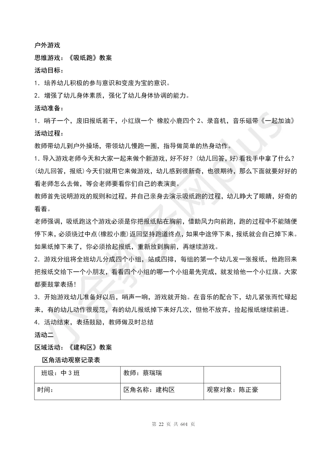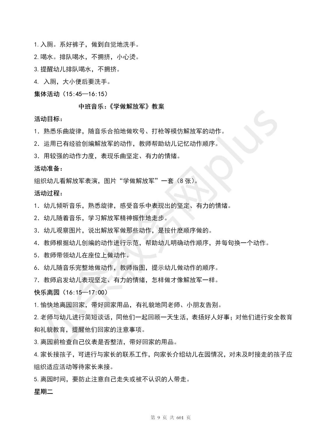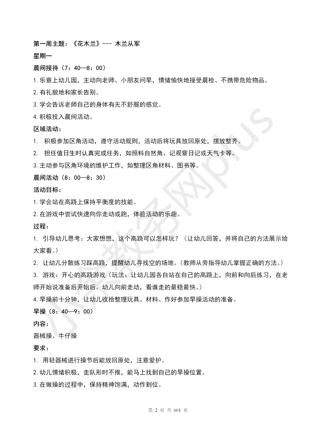 幼儿园中班春季下学期周计划和教案模板(1 - 18 周)。