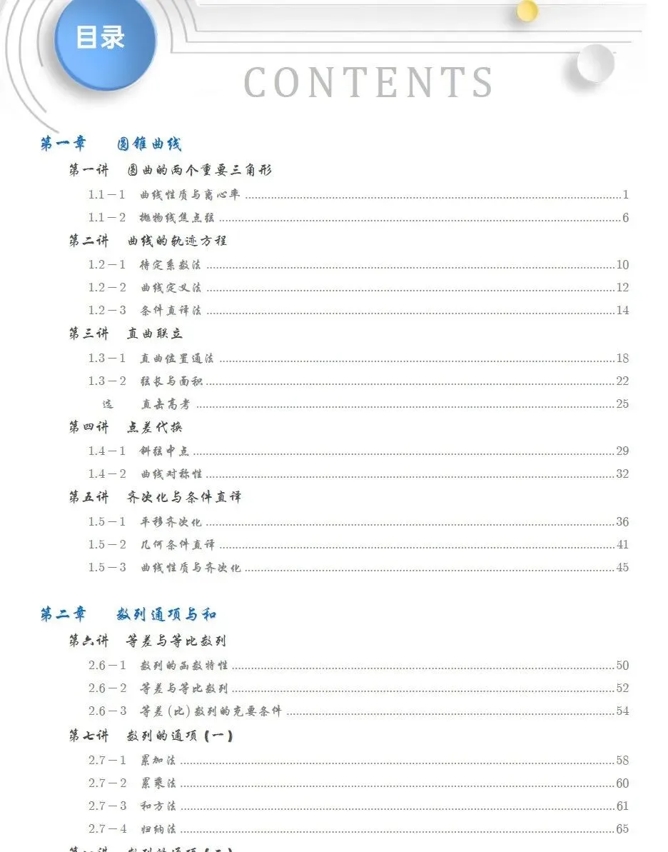 高中内容最难的时期数列、圆曲、导数考试内容很难这本讲义,重点突破三座大山啃掉最硬的骨头满怀信心进入一轮复习