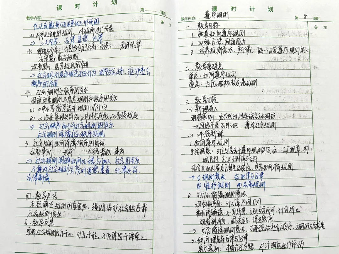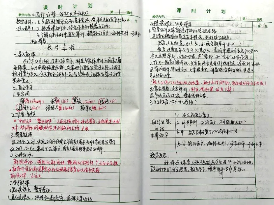 活动中,共收到18份手写教案,书写工整、教学目标、重难点分析、学情研判、教学过程设计、教学反思等环节完整,充分体现了青年教师严谨治学的态度。