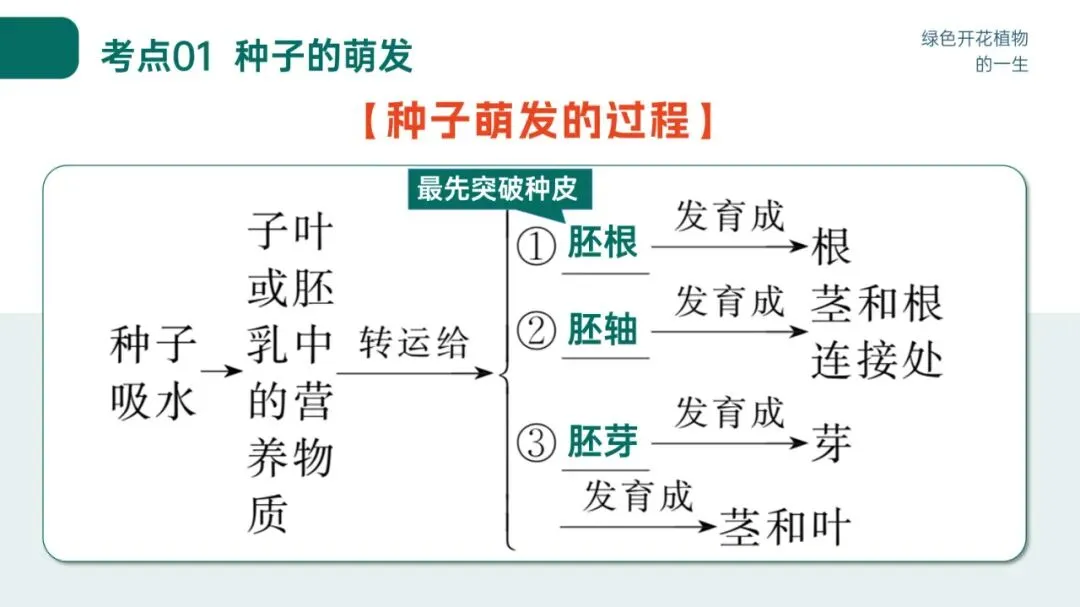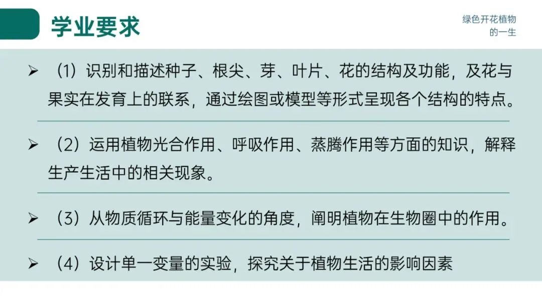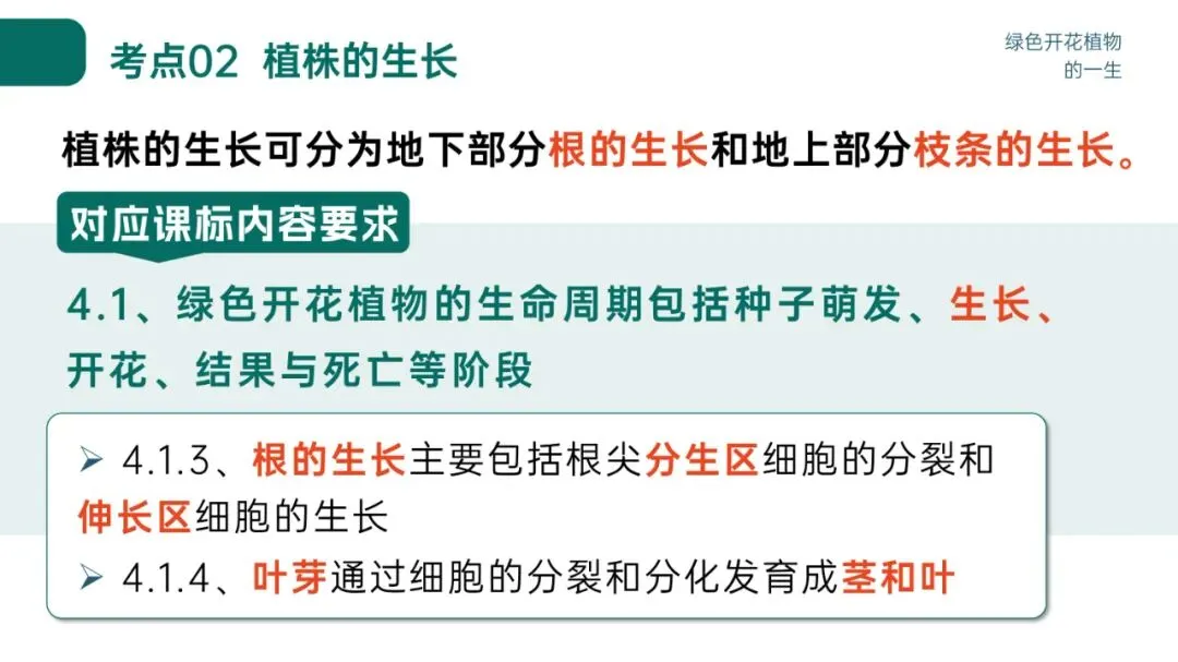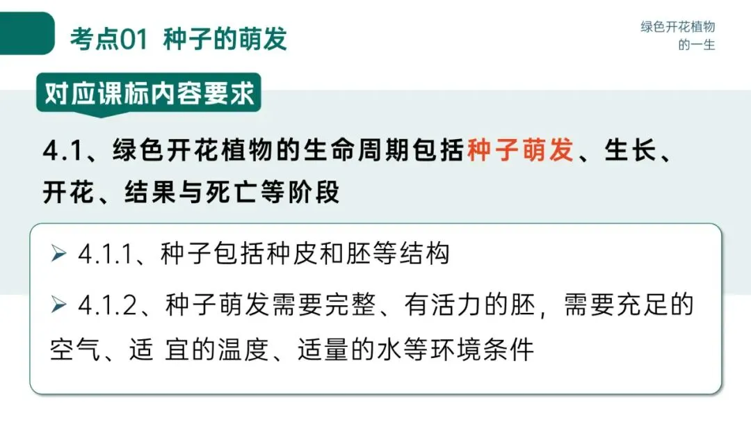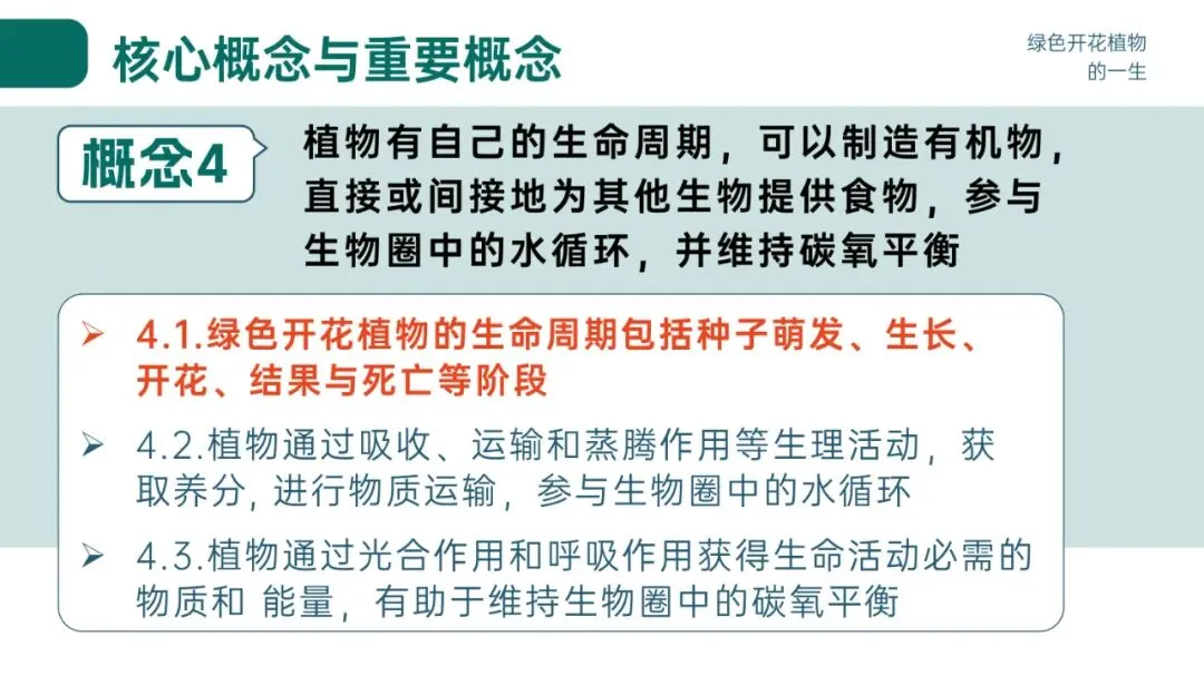 4.1绿色开花植物的生命周期包括种子萌发、生长、开花、结果与死亡等阶段