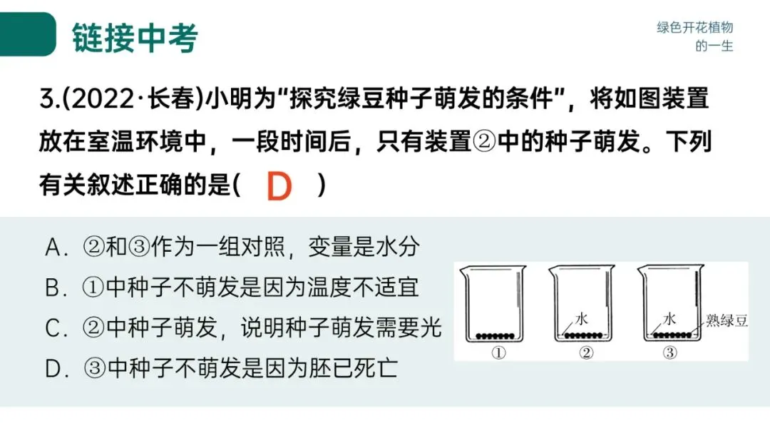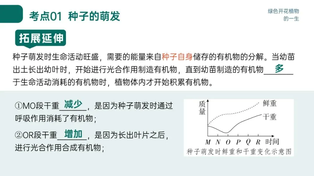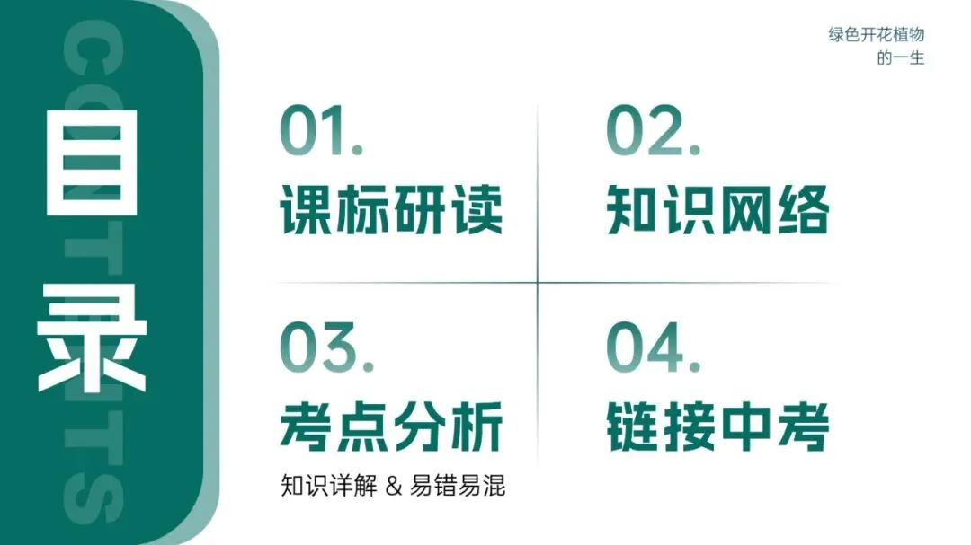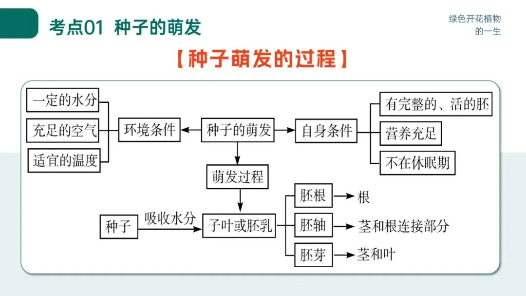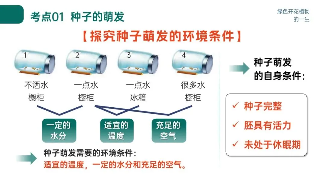 4.1绿色开花植物的生命周期包括种子萌发、生长、开花、结果与死亡等阶段