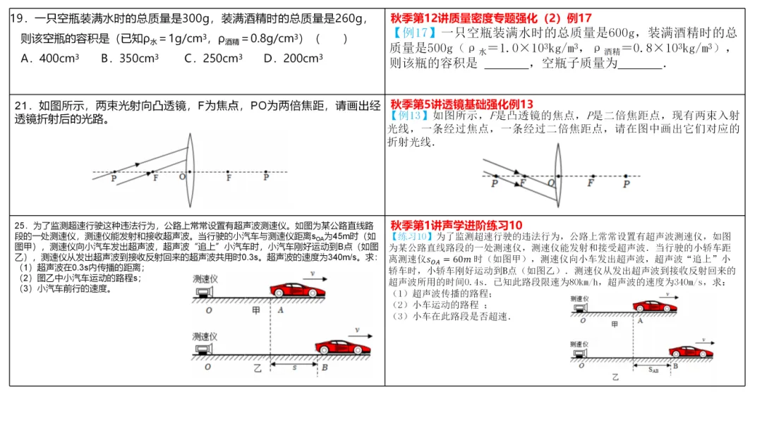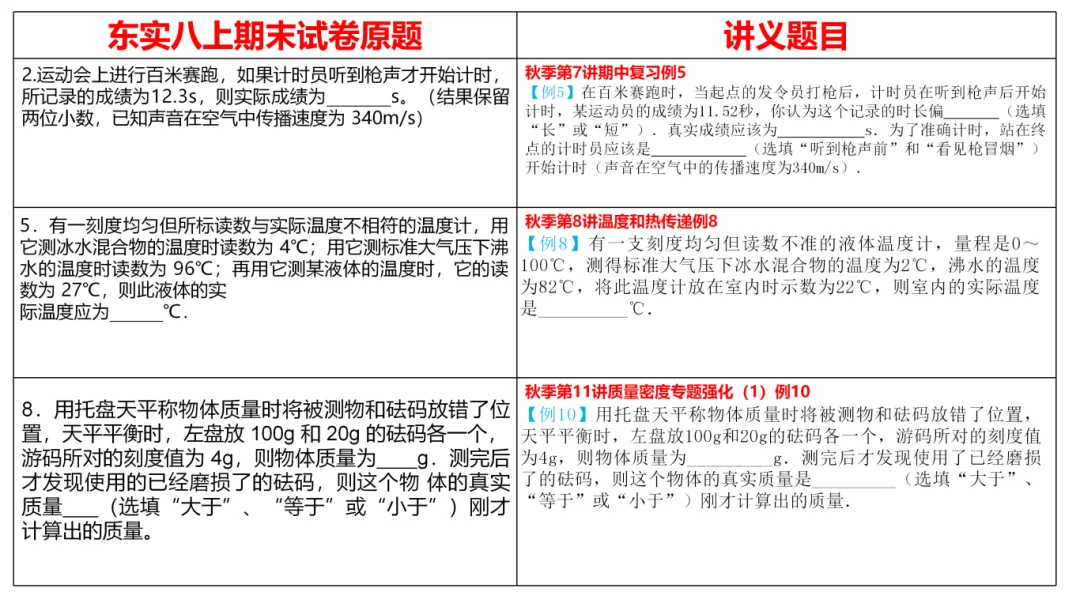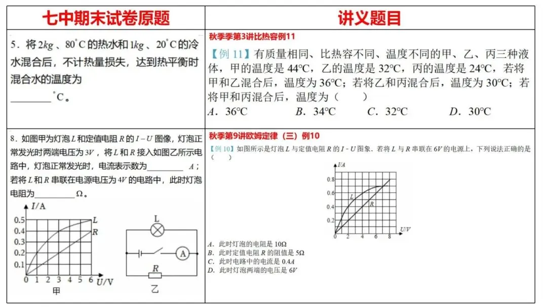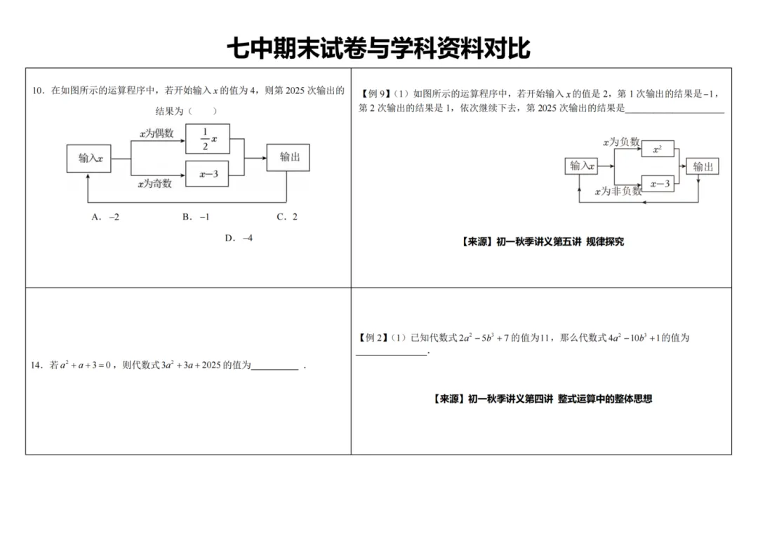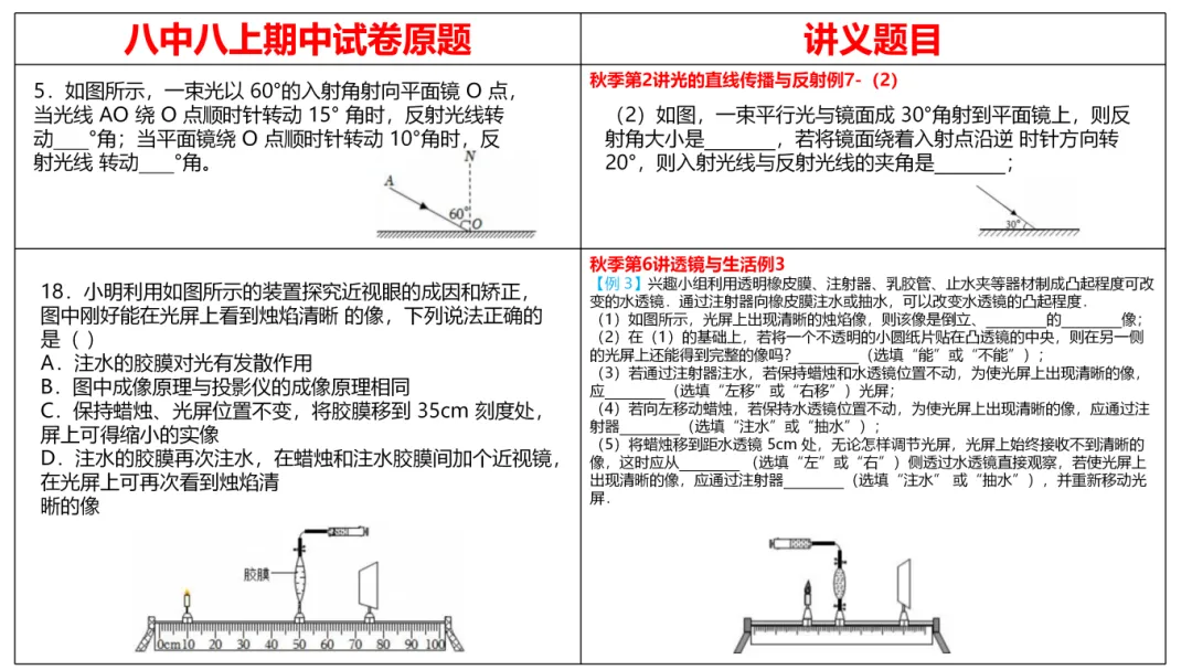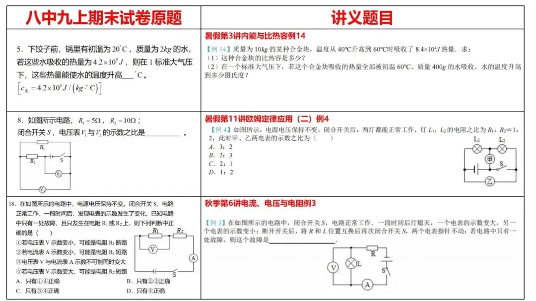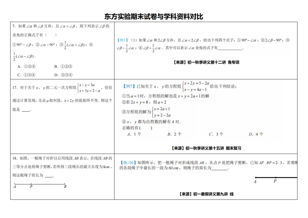 其中,八中西24题中有23题,七中和东方实验23题中有22题,均可在讲义及配套练习中找到高度相似的题目,整体覆盖率高达95%,甚至八中西试卷选择题的压轴题就是我们秋季结课考试的原题。