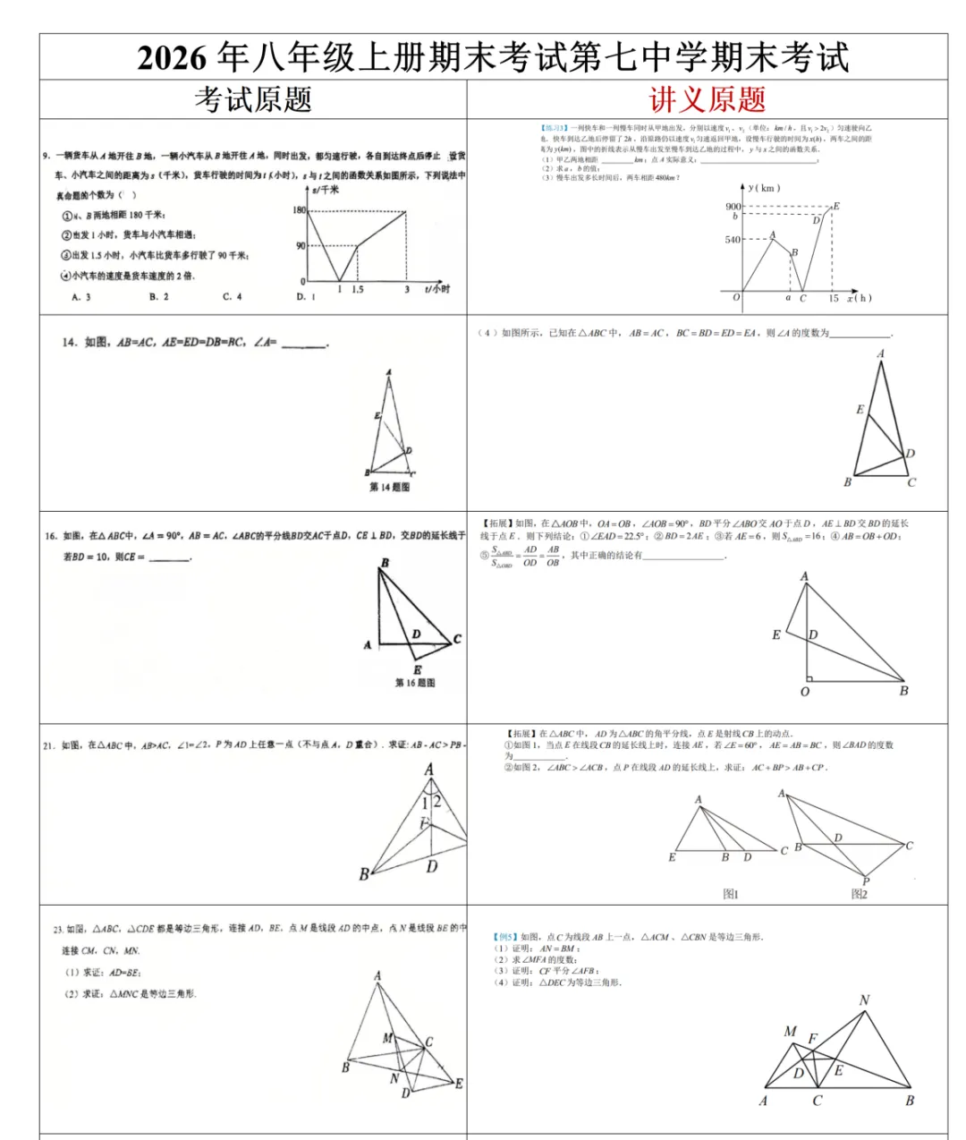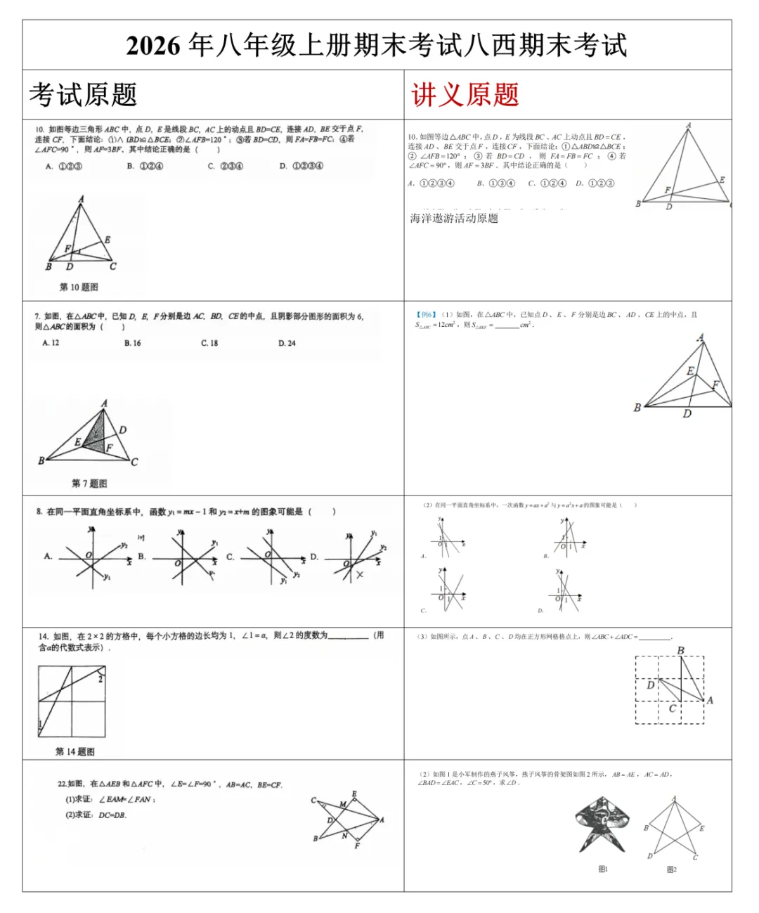 2025-2026学年八年级上学期期末数学考试(八中西24题,东方实验、七中23题),我校讲义及配套练习题对于本次考试的知识点覆盖率达100%。