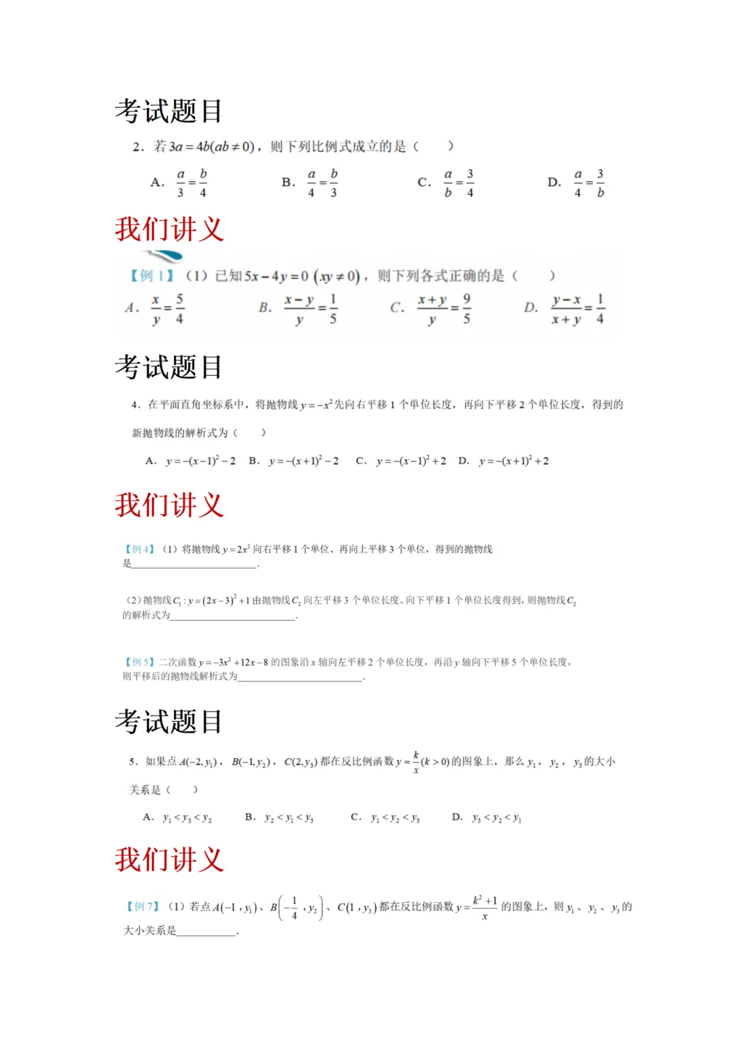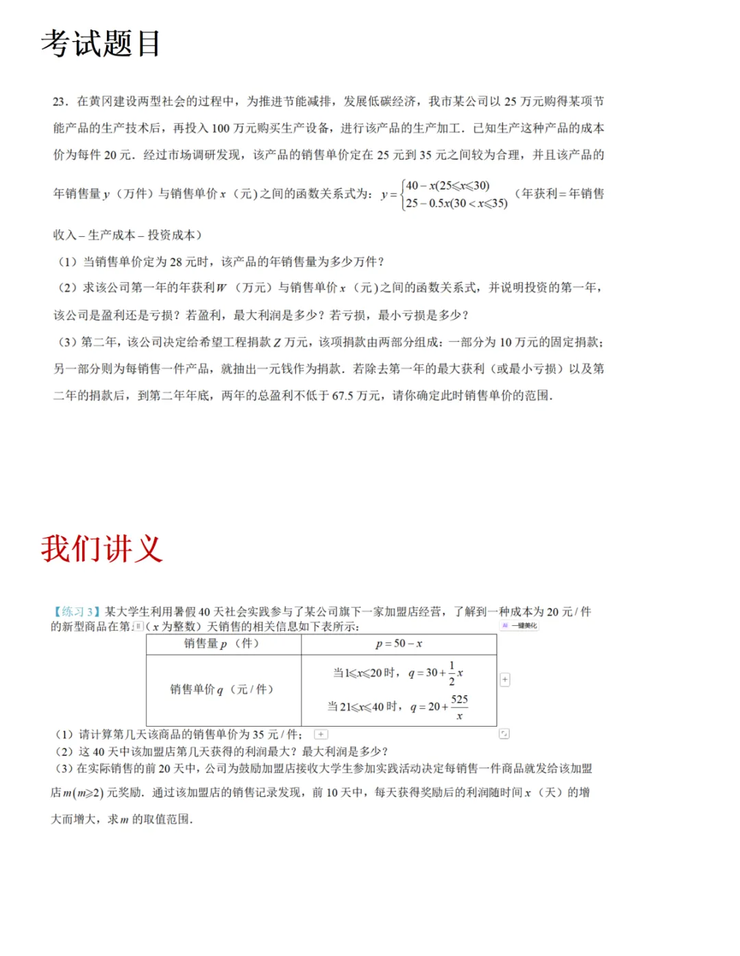 代数方面,既考察基础概念及性质,如自变量取值范围、一次函数的增减性等,也注重函数在实际中的应用,如七中和东方实验的试卷中都出现了经济方案问题、行程问题。