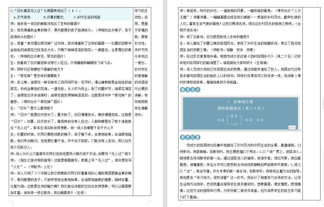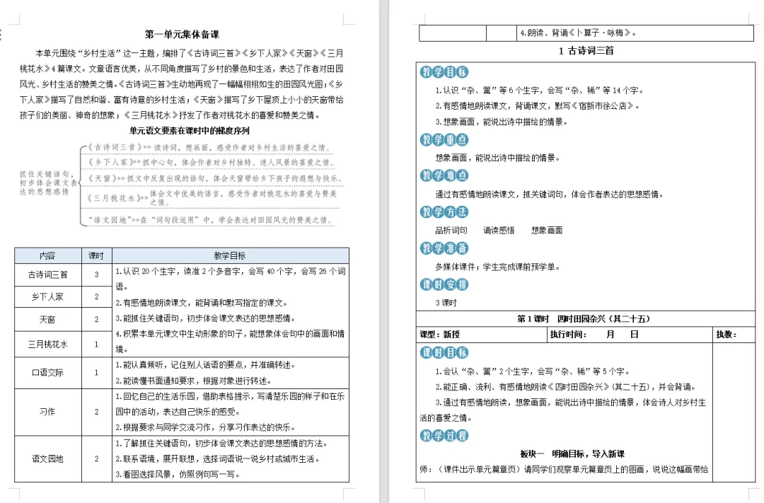 >【语文教案课件】部编版小学语文四年级下册表格配套教案课件(含反思)《第1课 古诗词三首》