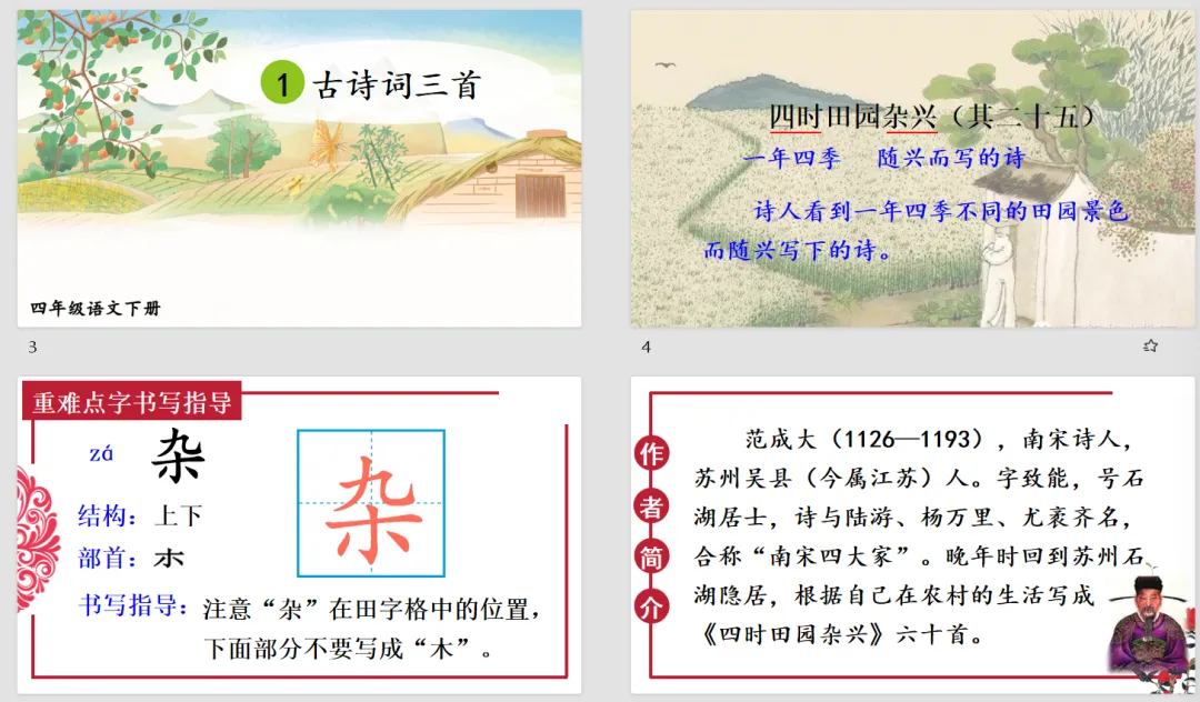 【语文教案课件】部编版小学语文四年级下册表格配套教案课件(含反思)《第1课 古诗词三首》