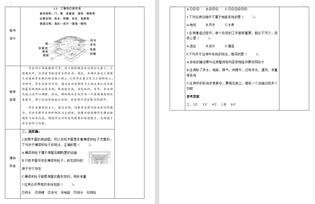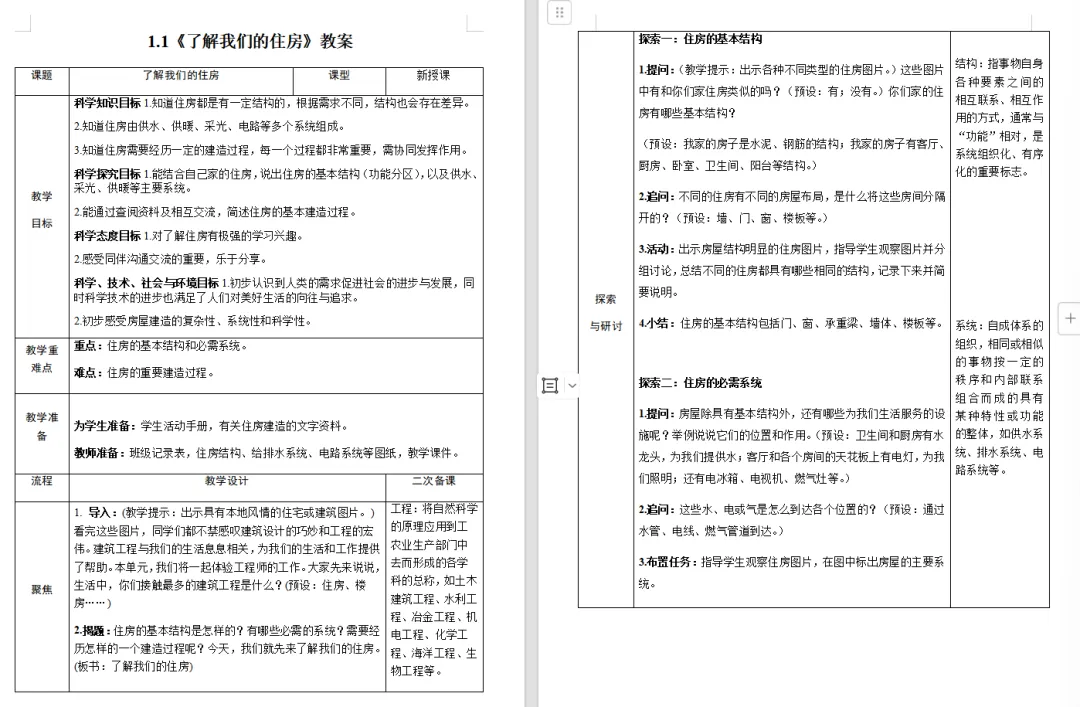 >【科学教案课件】教科版小学科学六年级下册表格配套教案课件(含反思)《1.1了解我们的住房》