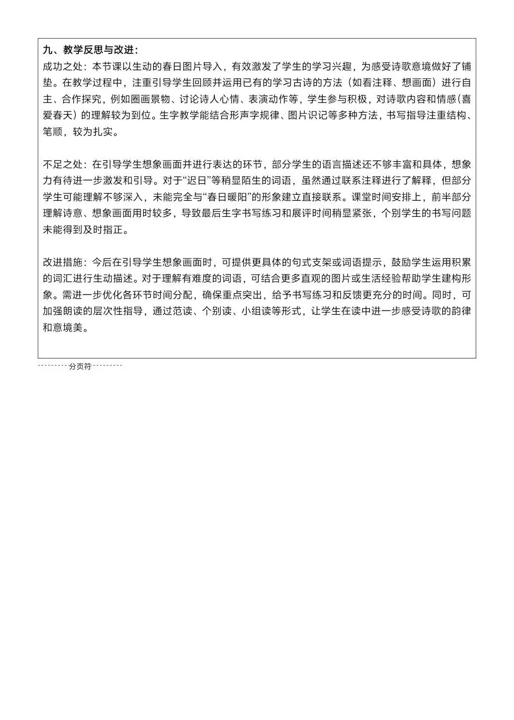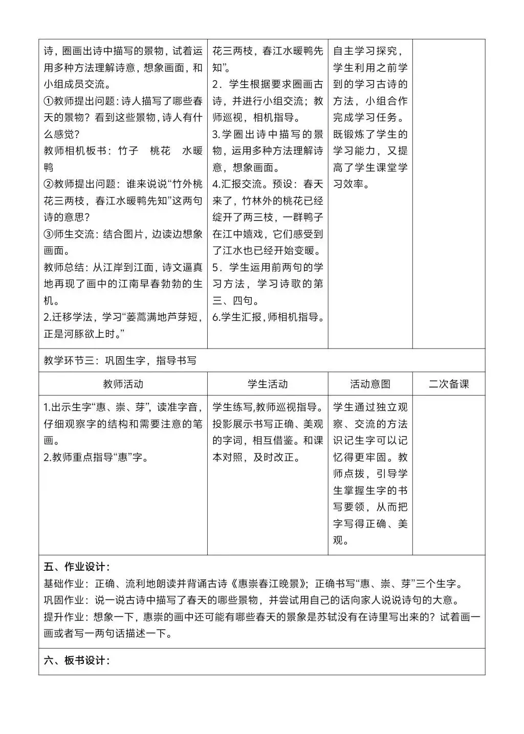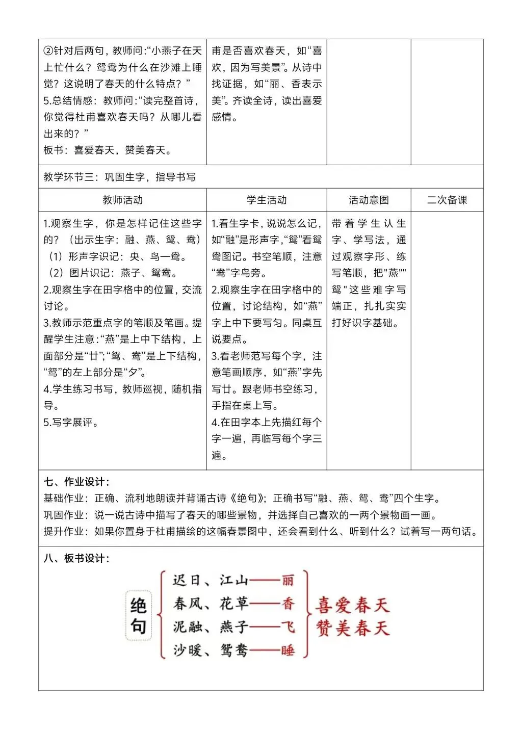【语文教案课件】部编版小学语文四年级下册表格配套教案课件(含反思)《第1课 古诗词三首》
