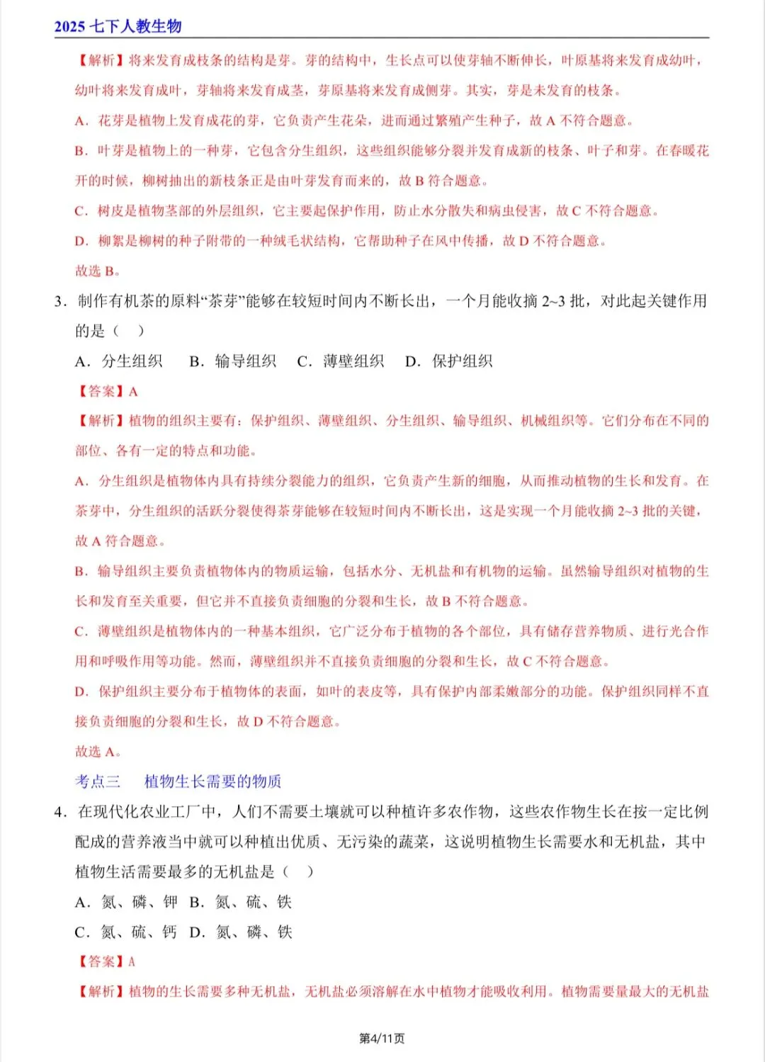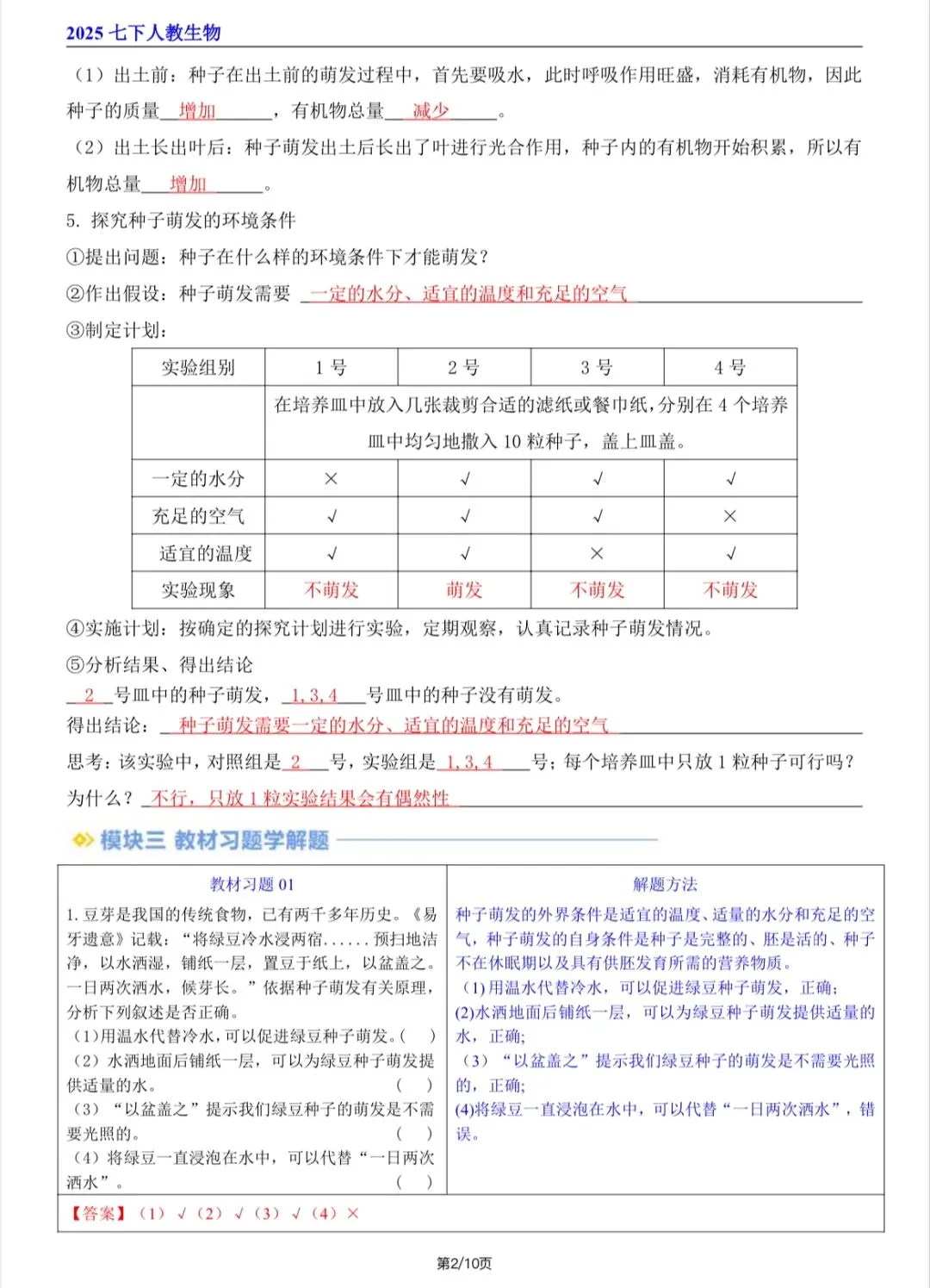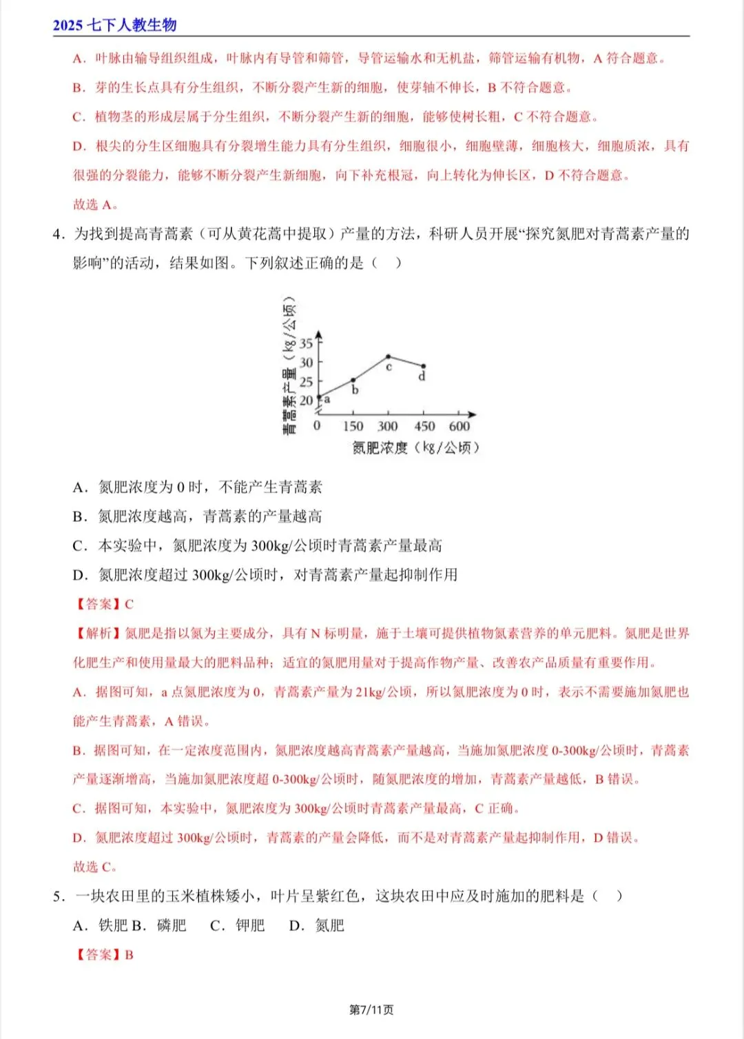 2026新人教版七年级下生物寒假讲义(第一至五章全)电子版可打印!