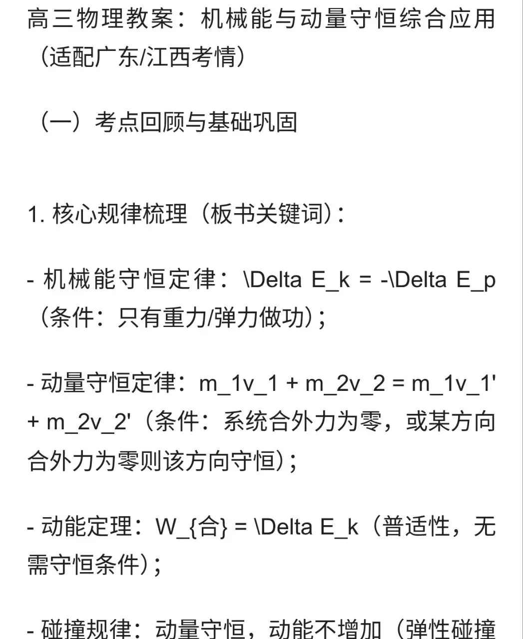 高三物理教案:机械能与动量守恒综合应用 适配广东江西