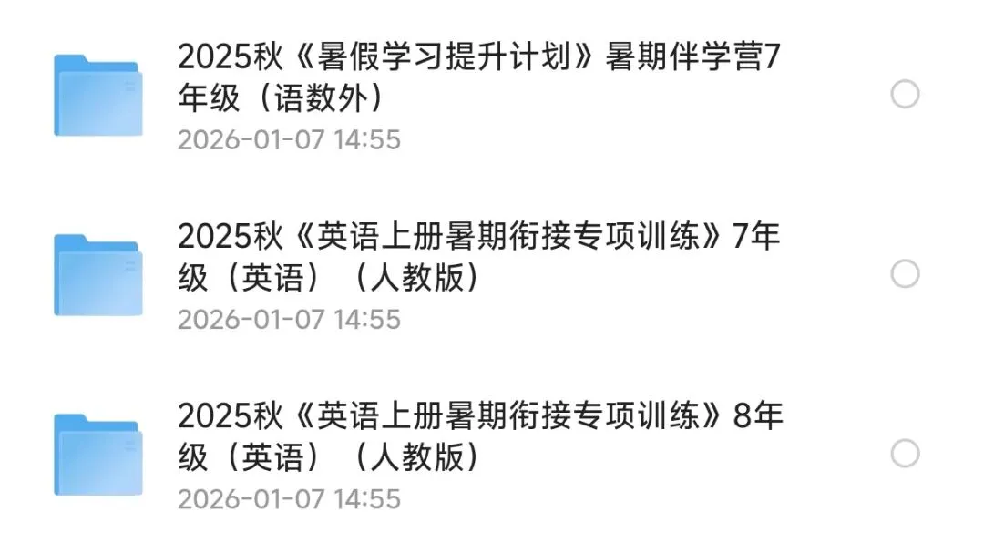 ✅ 2025秋暑假学习提升计划(语数外)+暑期衔接专项训练(七/八年级英语人教版):提前预习新学期核心知识点,比如八年级的一般将来时、宾语从句,搭配针对性专项训练,孩子开学听课更轻松,快速适应新学期节奏;