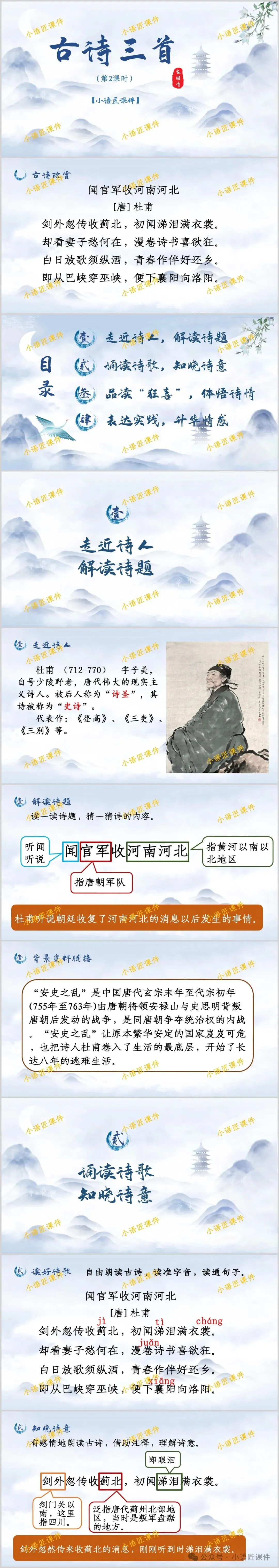 今天给大家分享部编版五年级下册《古诗三首》(第2课时)的独家课件。