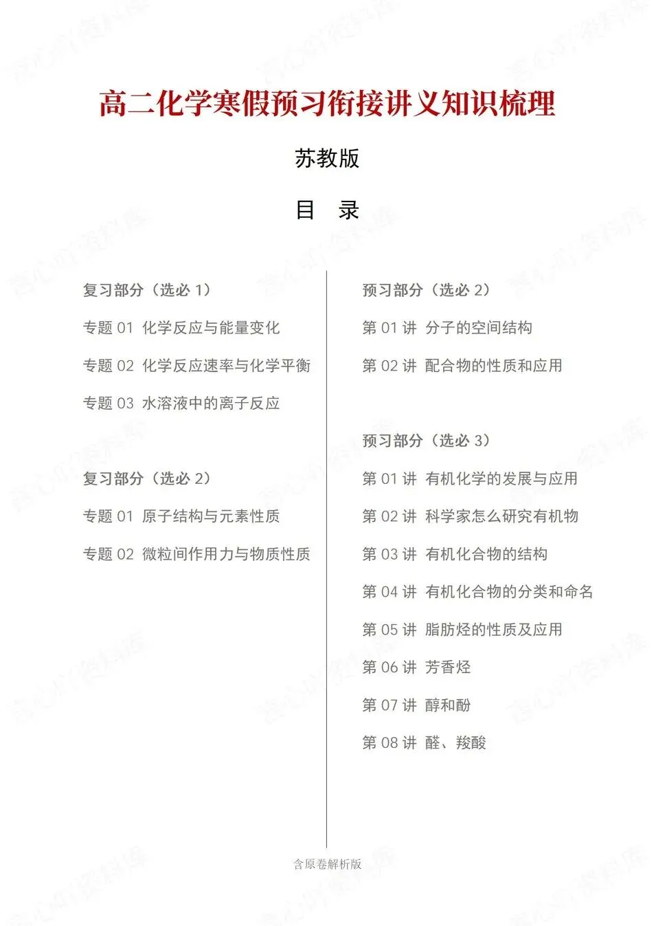 >高中化学-高二寒假衔接预习讲义知识归纳复习练习苏教版