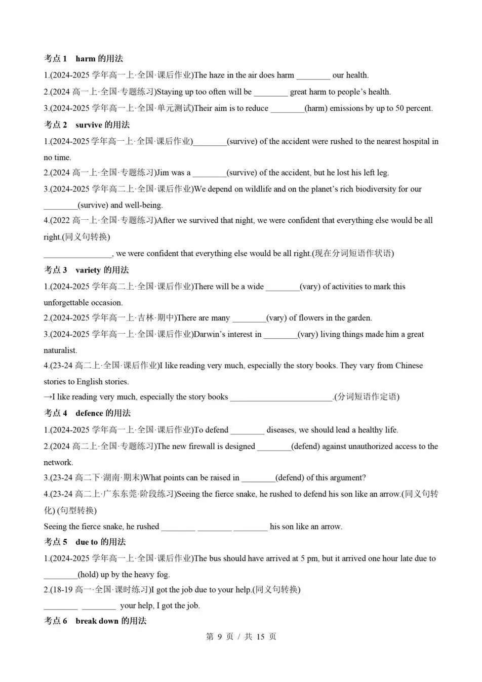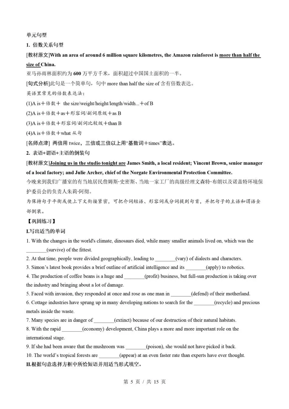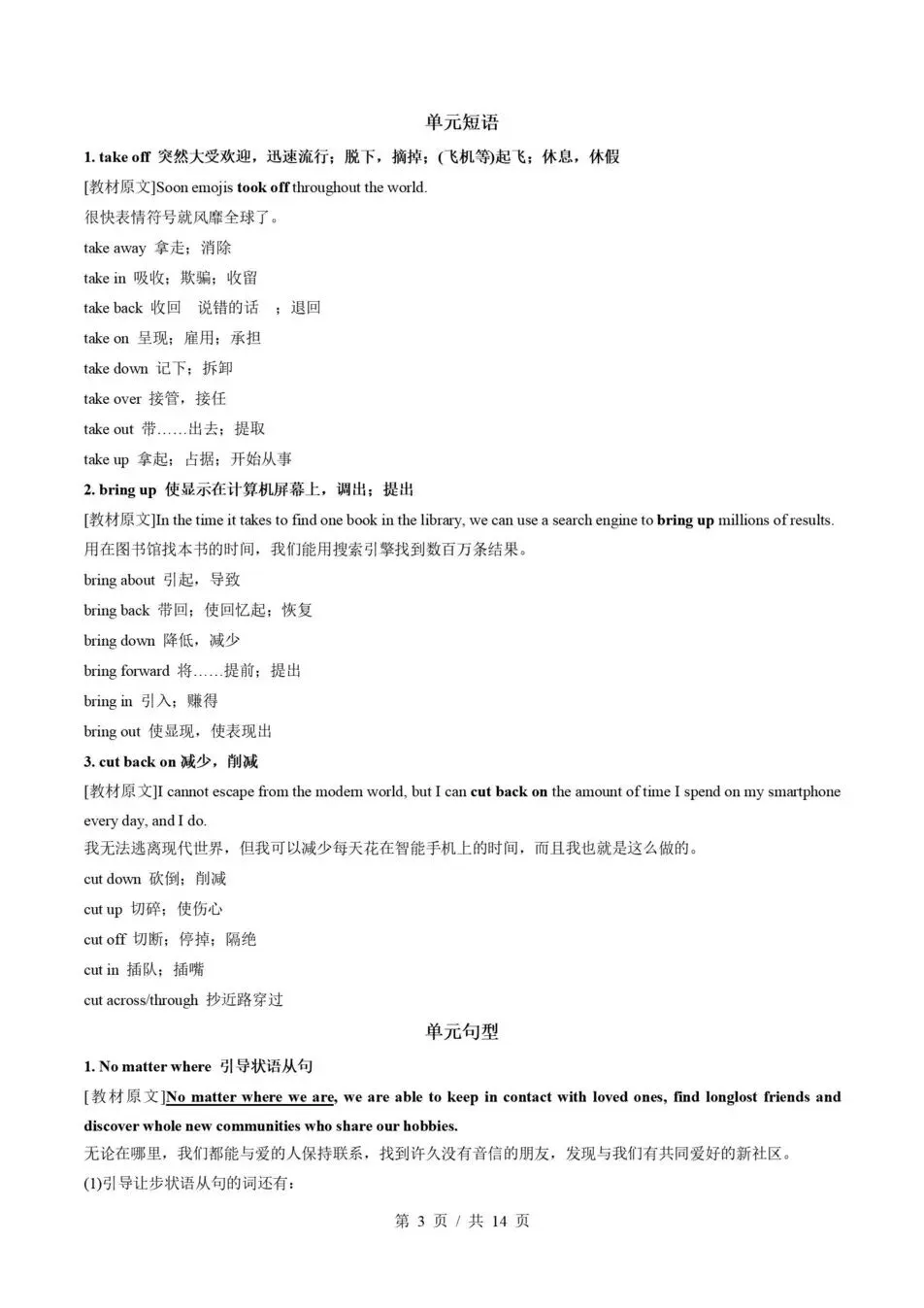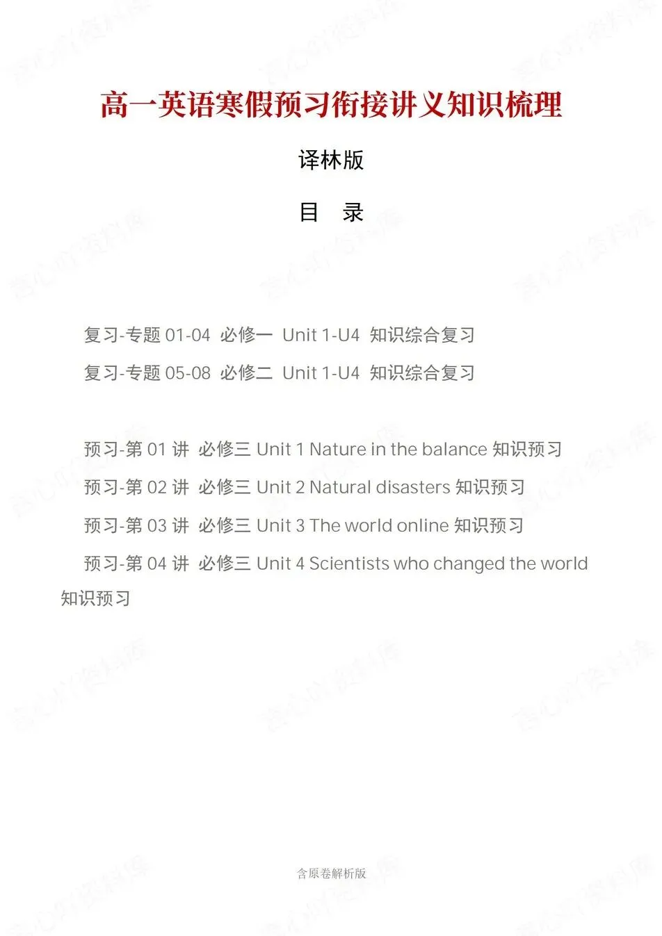 >高中英语-高一寒假衔接预习讲义知识归纳复习练习译林版