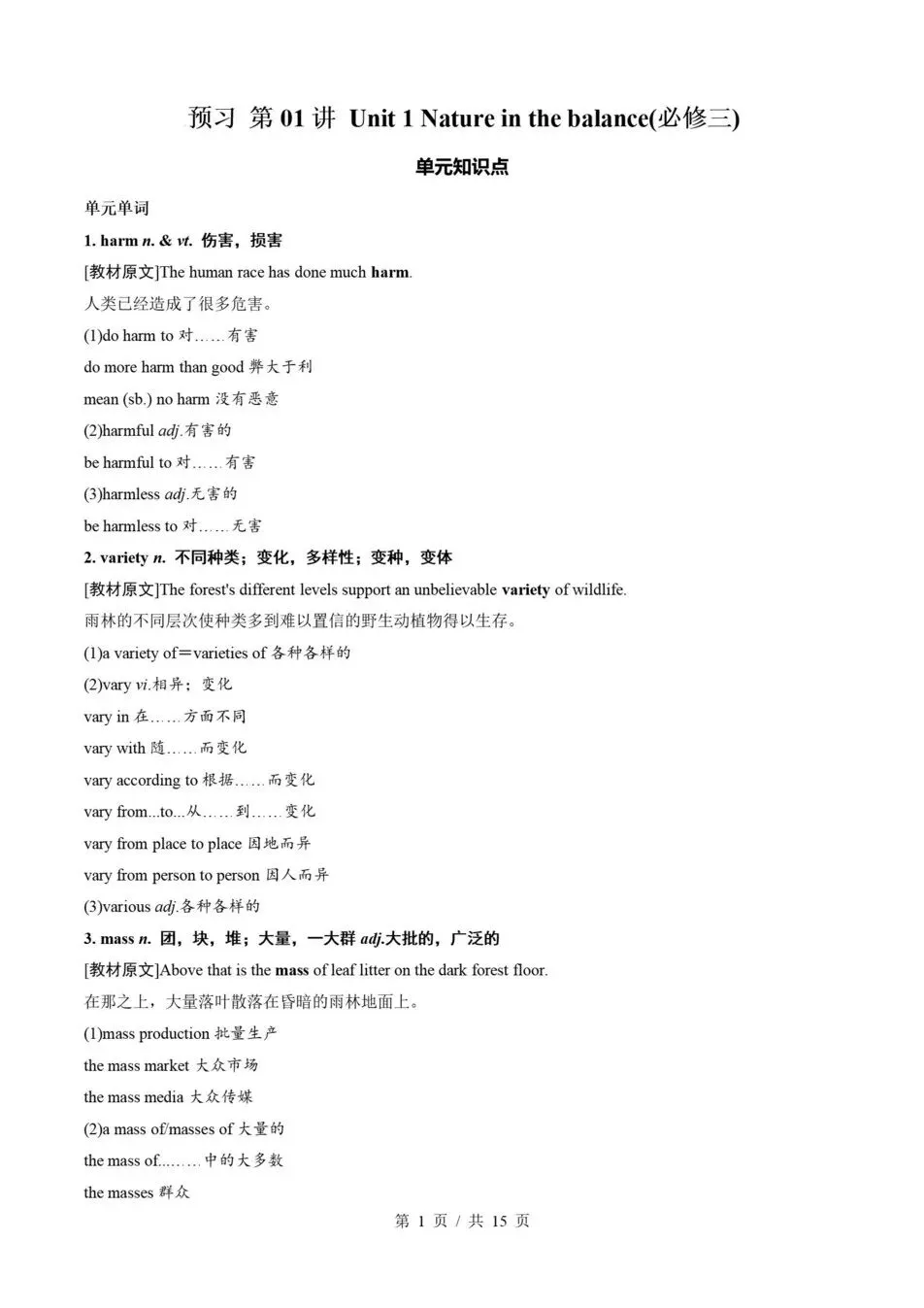 高一数学寒假衔接讲义15讲