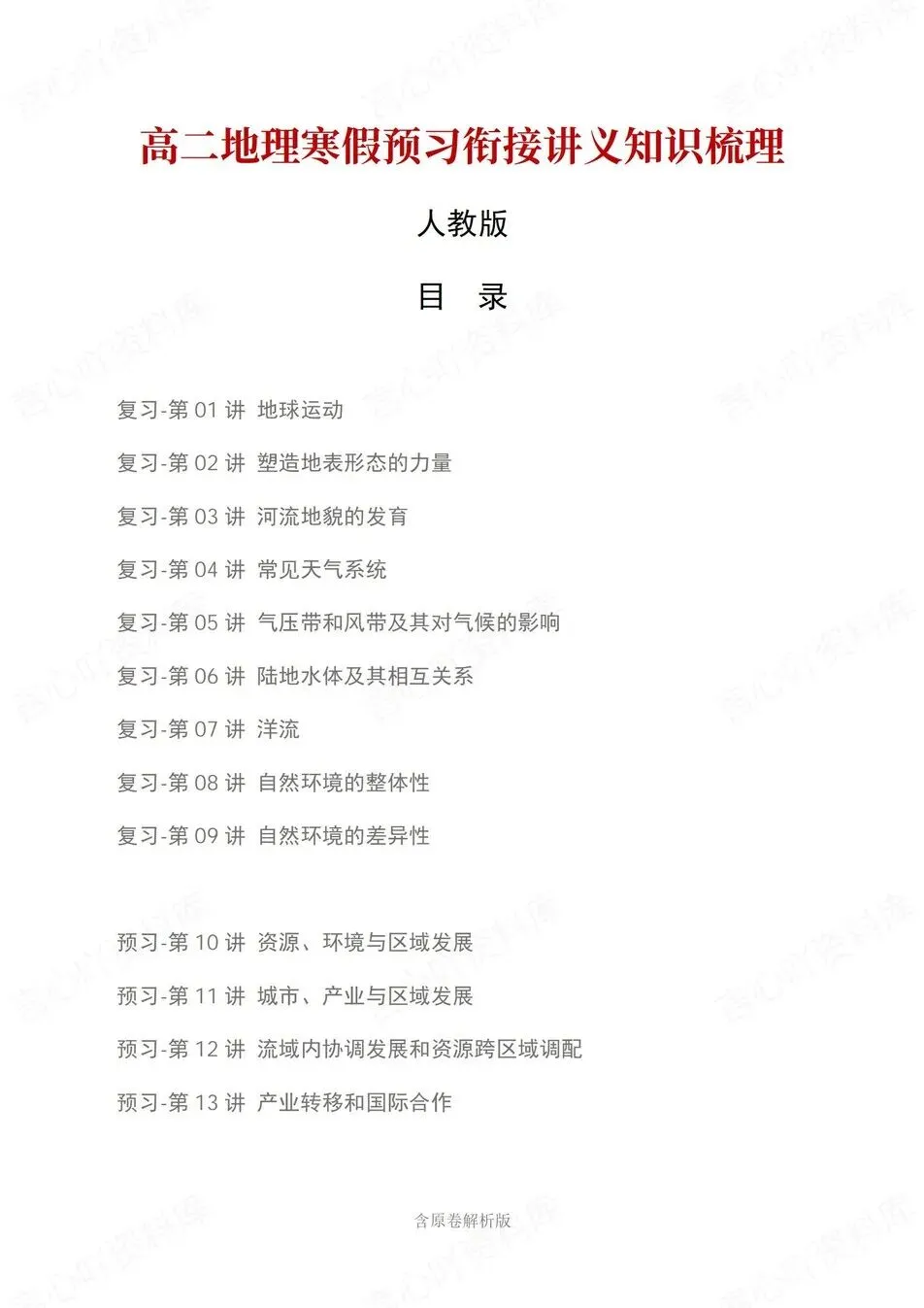 衔接预习,高中地理高二寒假假期预习梳理练习人教版,13讲知识归纳衔接,,