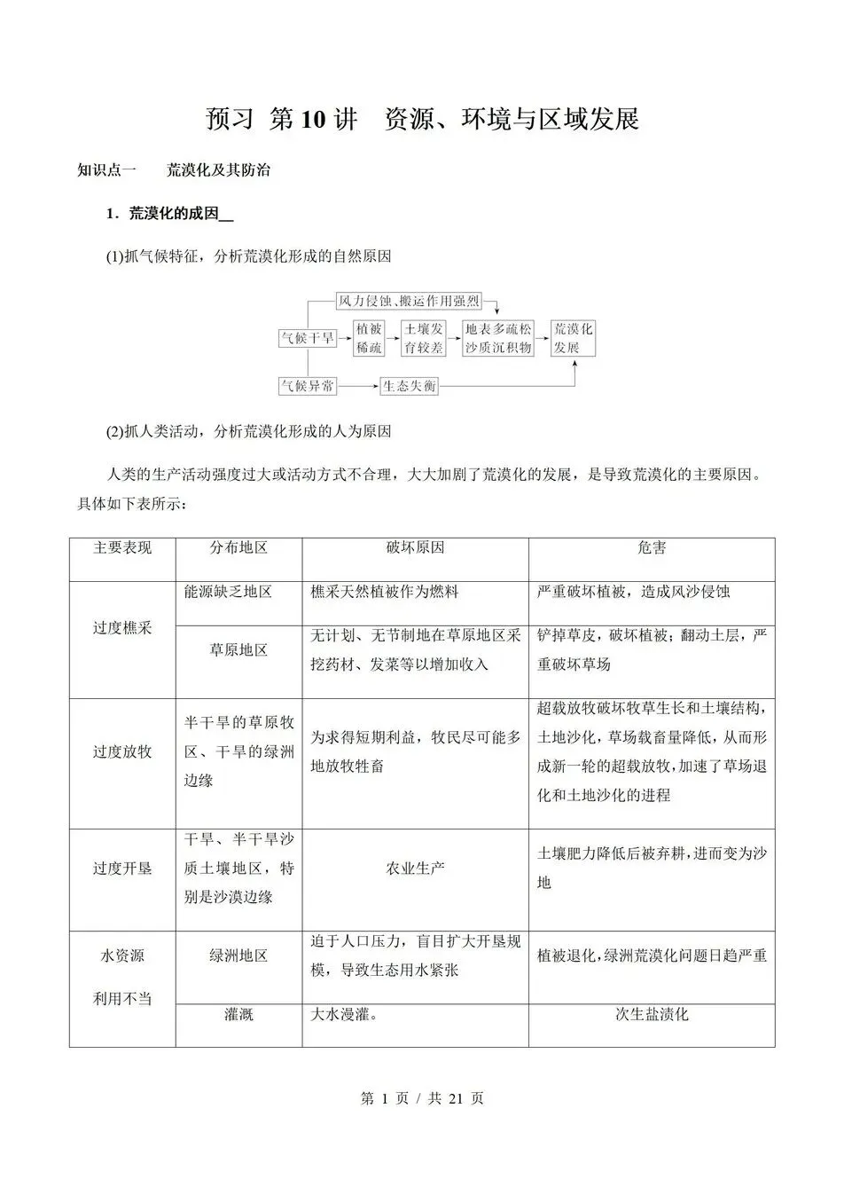 高中地理-高二寒假衔接预习讲义知识归纳复习练习人教版