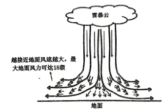 【点睛】“下击暴流”是一种天气现象,它产生于强对流云团内,从云底部向下“击出”为速度很快的冷气流,与近地面暖湿空气相遇后形成强暴流,对近地层的植物或建筑物造成危害。当一股冷空气突然从万米高空以极高的速度俯冲下来时就形成了一股无坚不摧的巨大能量。下击暴流是和雷暴有关的一种小尺度现象。下击暴流形成的对流云团主要是上空的冷空气与近地面暖湿空气的对流。