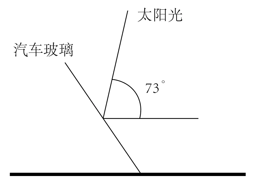 高考结束后王同学马上随父母外出自驾旅行。出发时为一天中太阳高度最大时。此日太阳直射点位于北纬23°,汽车正由北向南行驶,此时手机显示时间为12:16.太阳高度为73°,下图为汽车玻璃反射太阳光的示意图。完成下面小题。