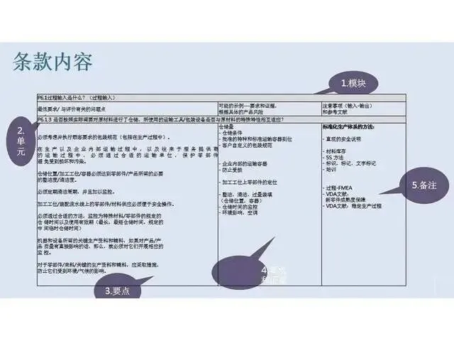 VDA6.3:2023 采用模块化结构,覆盖产品从潜在供方选择到批量生产及后续支持的全流程,共 59 个提问,其中 18 个星号问题(关键风险点),具体要素如下: