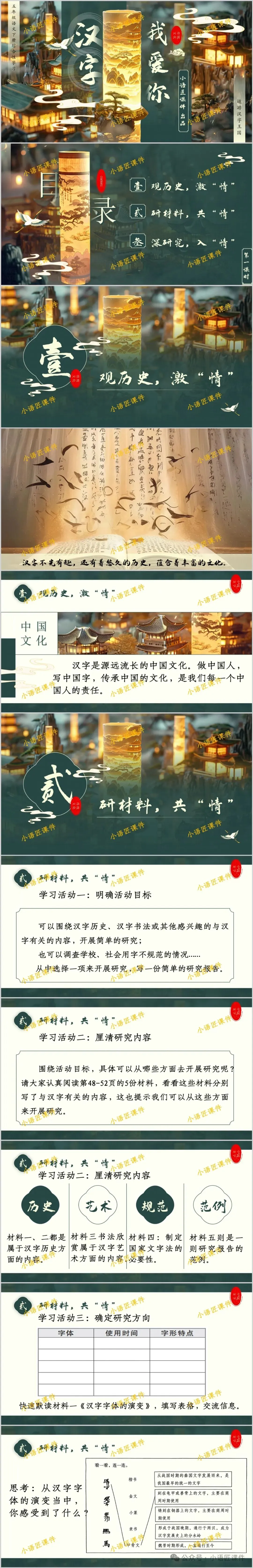 以上便是部编五年级下册第三单元《综合性学习:我爱你,汉字》独家课件的全部内容。