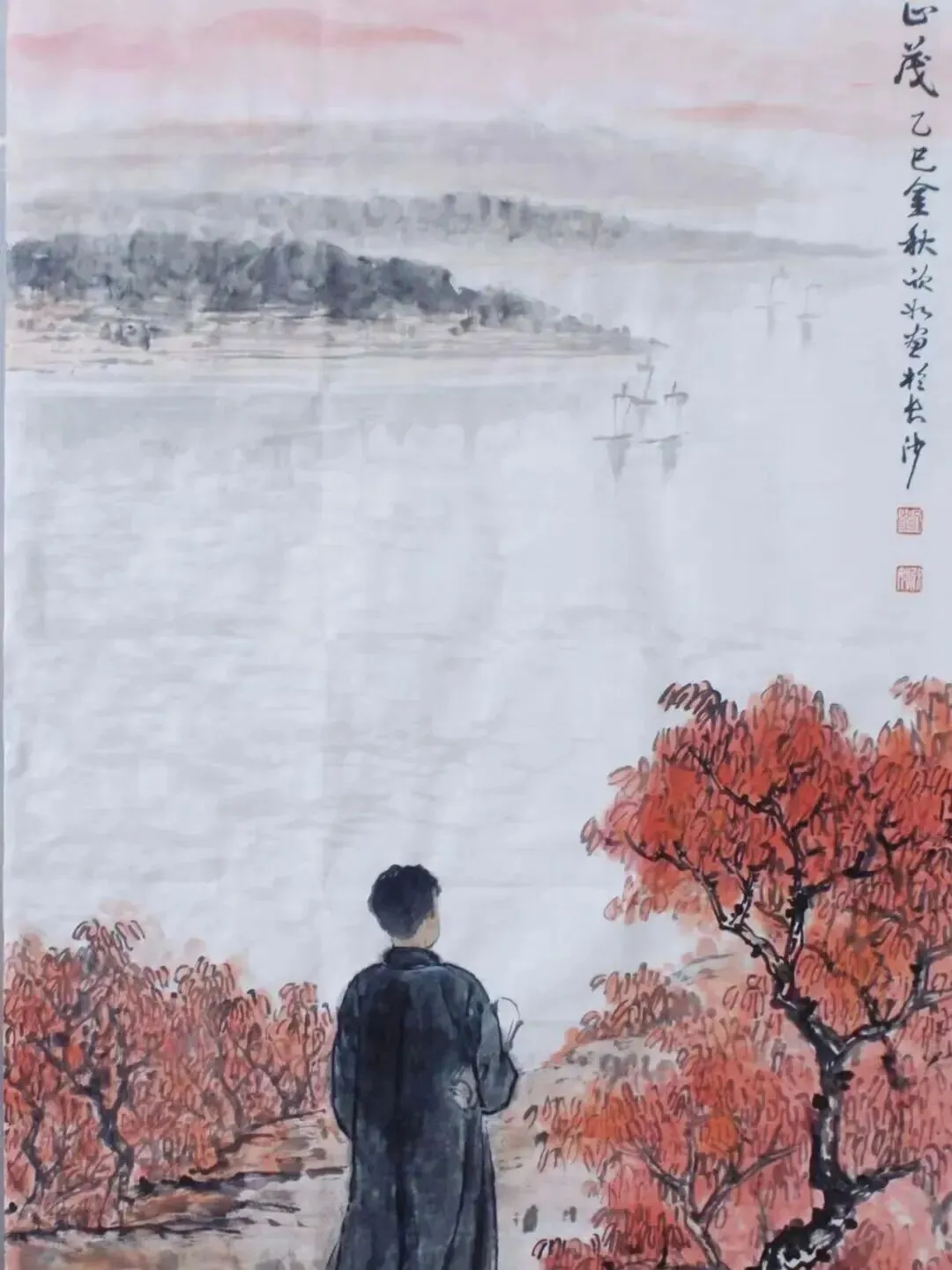翻译:深秋时节,我独自站立在橘子洲头,望着湘江水向北奔流而去。