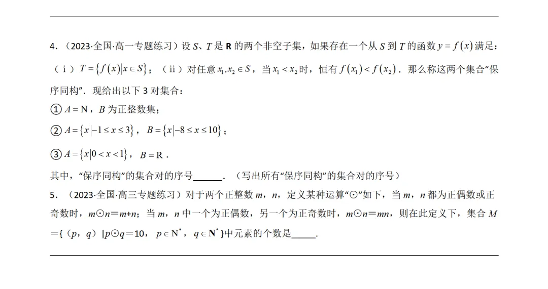 - 元素与集合的关系:属于(∈)和不属于(∉)。
