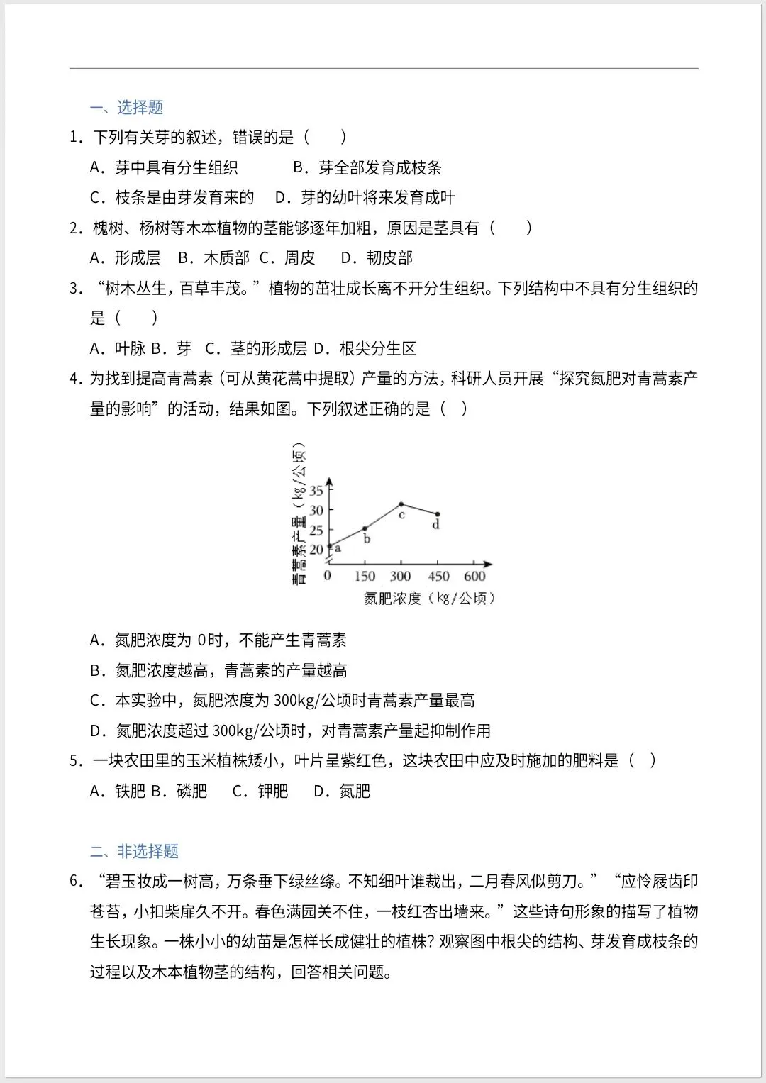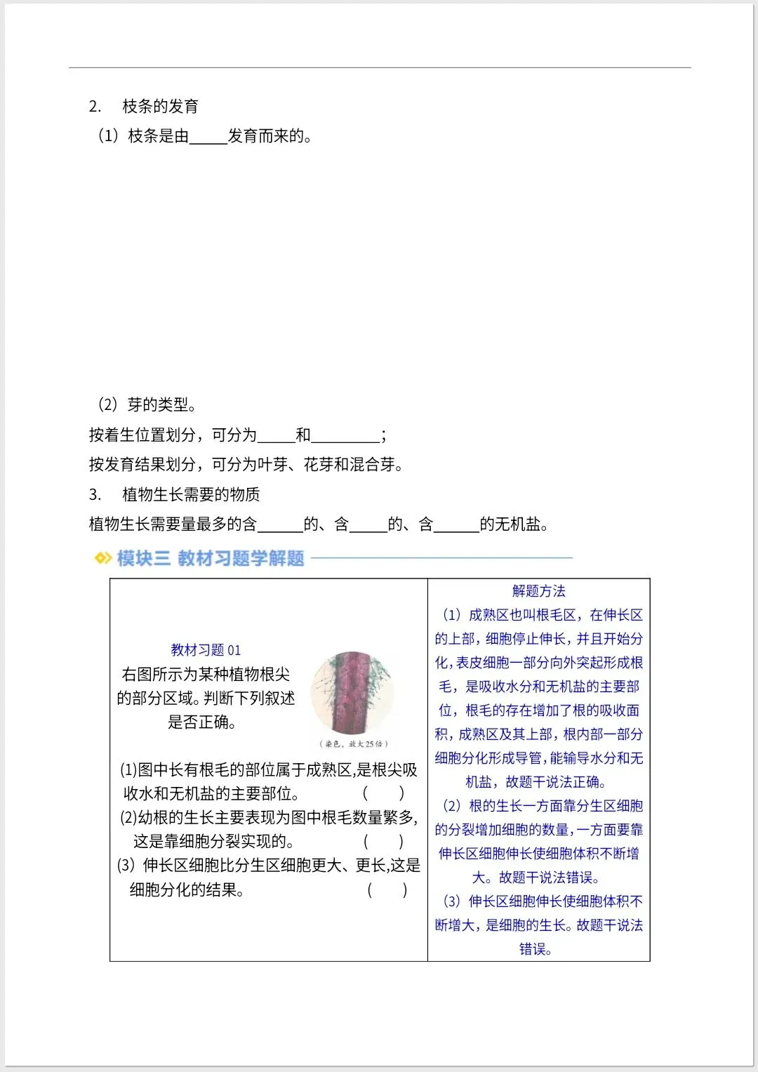 2026新版七下生物提升讲义(思维导图+基础知识梳理)习题+解析,有完整版可打印