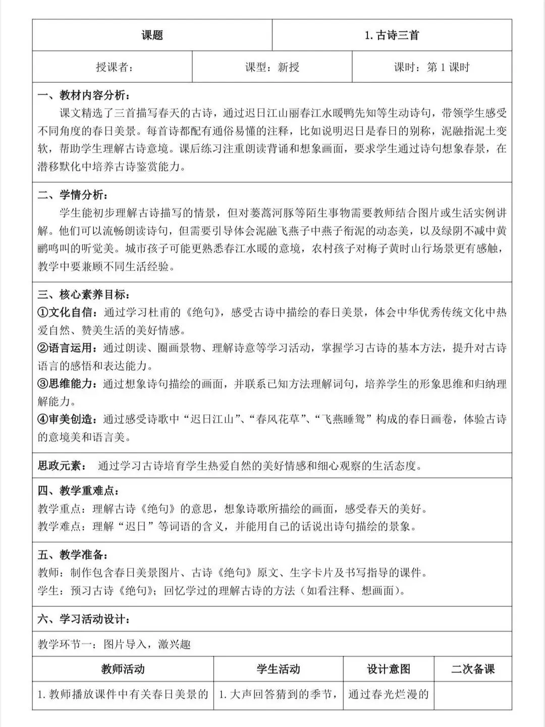 3下语文️26年核心素养教案