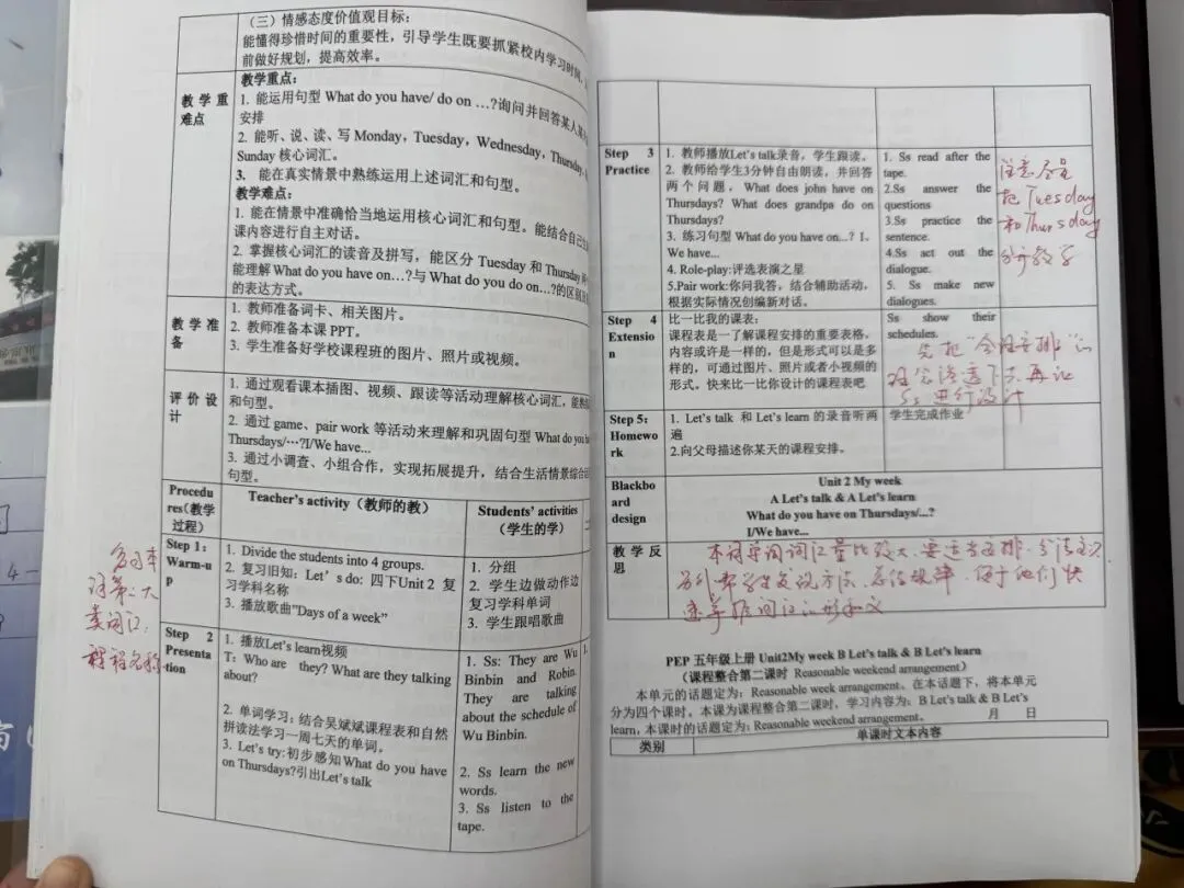方寸备课纸,写满育人初心;一页反思录,沉淀教学智慧。老师们的备课笔记条理清晰,重难点标注细致入微,每一个教学环节都反复推敲;课后反思真挚恳切。
