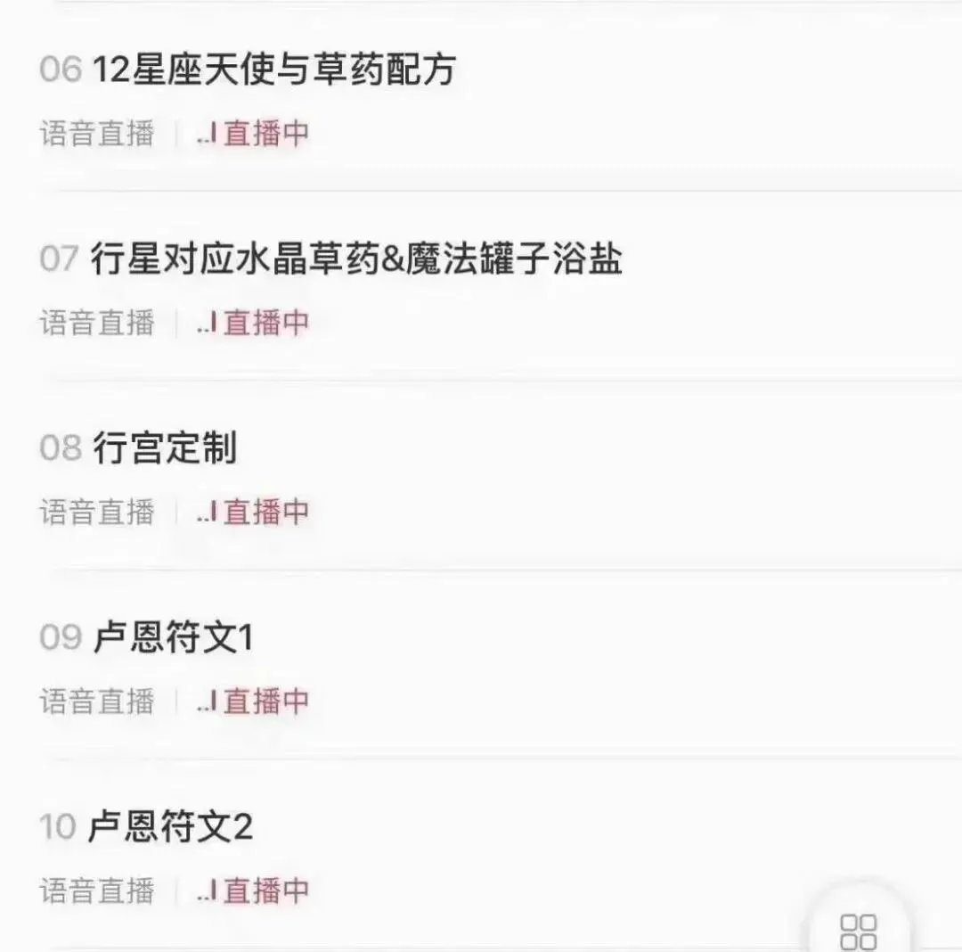 包括四元素草药、水晶能量讲解、天使与草药配方、卢恩符文、以及各种仪式等等