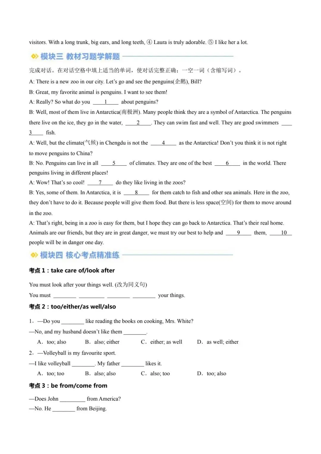 2026春「人教版」七年级下册英语寒假讲义(U1-U4全),word版可编缉打印!