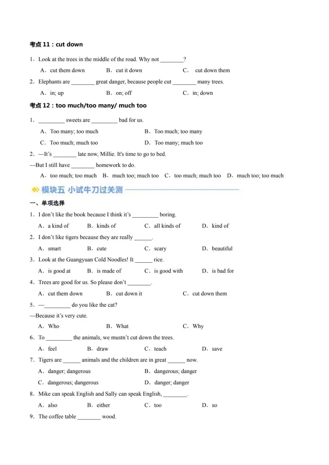 电子课本、各类试卷、知识点与