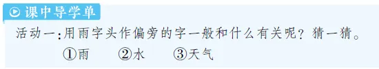 猜一猜:用雨字头作偏旁的字一般和什么有关呢?