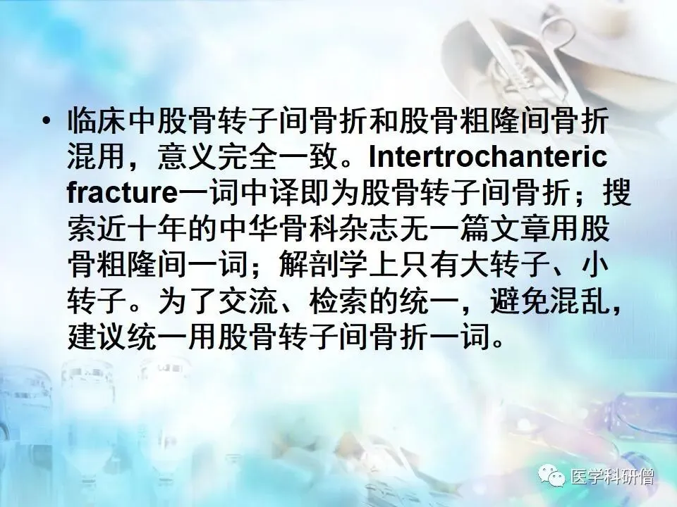 在医学领域,术语的准确性和一致性至关重要。股骨转子间骨折与股骨粗隆间骨折这两个术语,虽然在临床实践中常被视作同义词使用,但实际上它们指代的是股骨近端特定区域的骨折。为了学术交流的统一和精确,有必要对这两个术语进行明确界定。一般而言,股骨转子间骨折更侧重于描述骨折线位于股骨颈基底部与小转子之间的区域,而股骨粗隆间骨折则可能涵盖更广泛的范围,包括转子间及周围区域的骨折。然而,鉴于临床习惯及文献中的普遍混用现象,本文将不对两者做严格区分,而是统一采用“股骨转子间骨折”这一术语进行后续讨论。