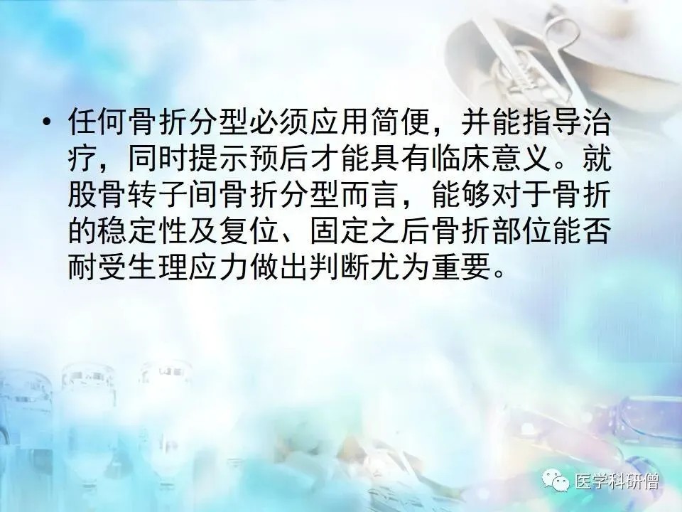 骨折分型对治疗具有重要的指导意义。不同类型的转子间骨折,其治疗原则、手术方法及术后康复计划均有所不同。因此,在临床实践中,应根据患者的具体情况和骨折分型,制定个性化的治疗方案,以达到最佳的治疗效果。