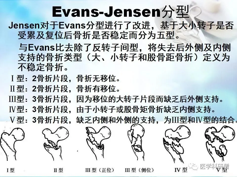 这种改进使得Evans-Jensen分型在临床应用中更具指导意义,能够帮助医生更精确地评估骨折情况,制定更为个性化的治疗方案。